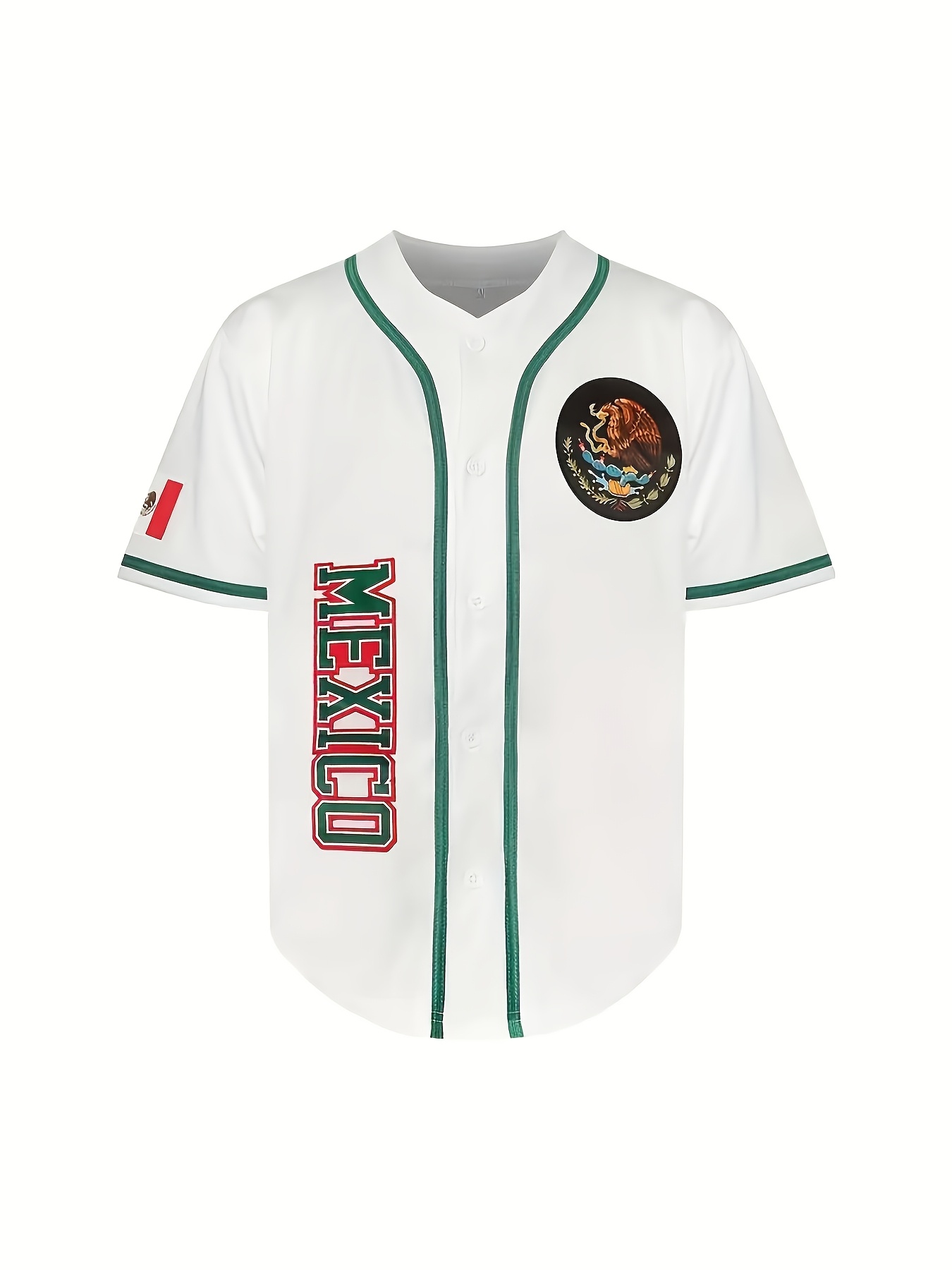 1pc Men'S Polyester V-Neck Baseball Jersey with Embroidered Mexican Design, Loose Fit Button-Up Top for Casual, Sports, Training, Hiking & Outdoor Activities, All-Season Comfort