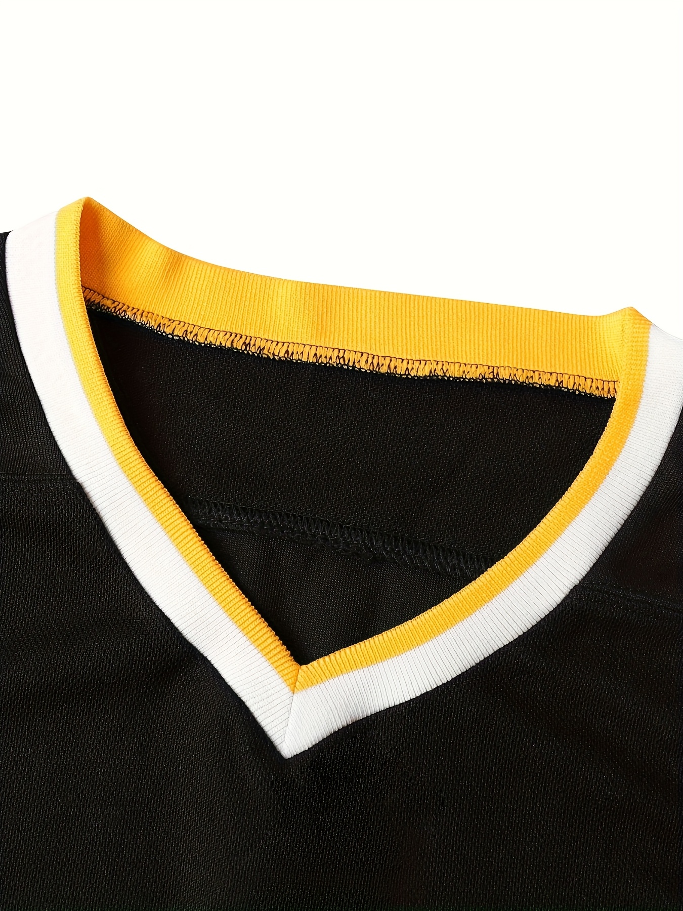 1pc Men's V-Neck Ice Hockey Jersey - 100% Polyester, Embroidered Striped & Solid Color, Breathable Knit Fabric, Loose Fit for Training & Casual Wear