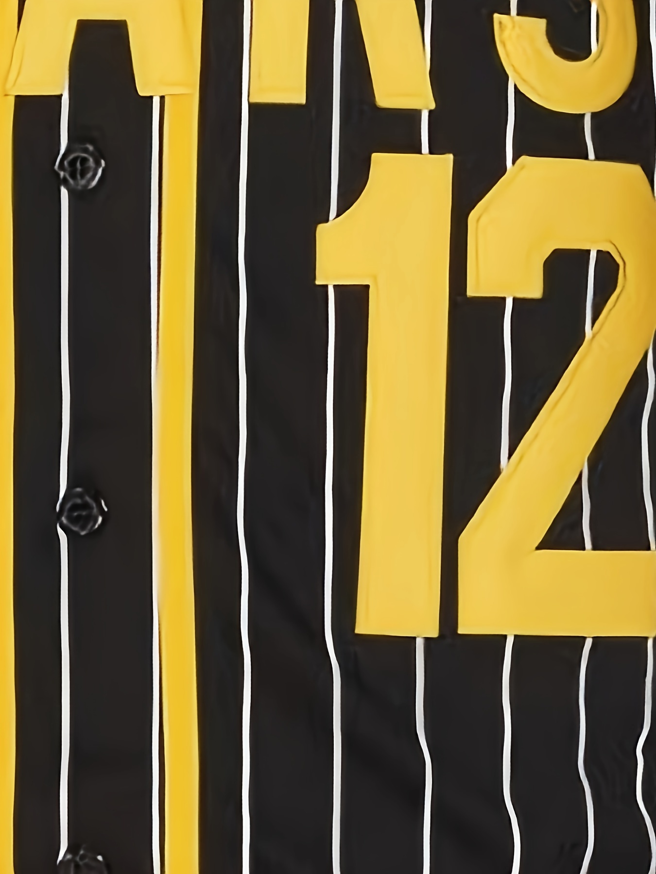 Men's #12 Retro Baseball Jersey - Vintage Black & Yellow Stripes with Lettering, Breathable 100% Polyester V-Neck Short Sleeve Shirt, Loose Fit for Sports, Casual & Holiday Wear (Thanksgiving, Christmas, Valentine's Day)