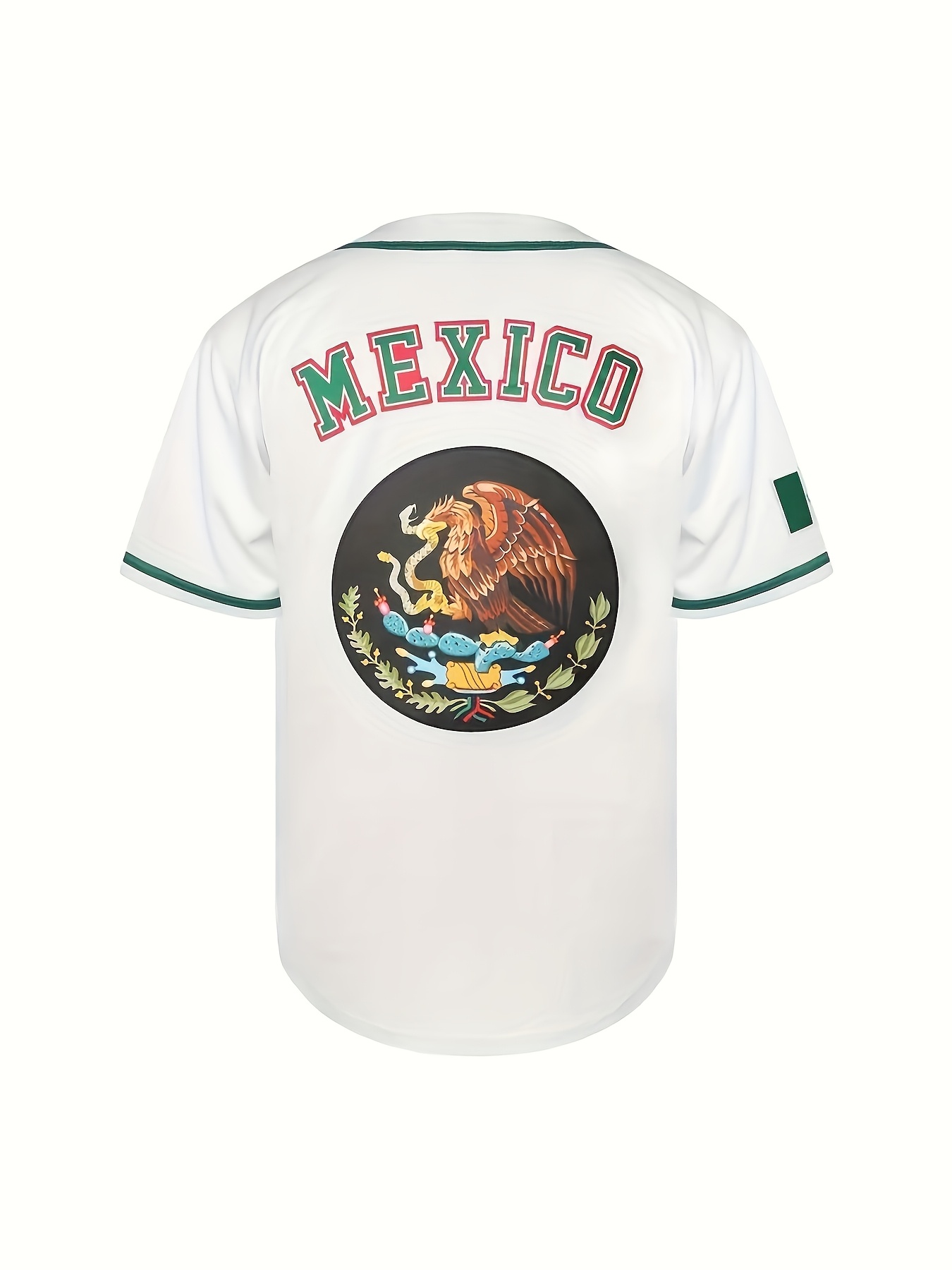 1pc Men'S Polyester V-Neck Baseball Jersey with Embroidered Mexican Design, Loose Fit Button-Up Top for Casual, Sports, Training, Hiking & Outdoor Activities, All-Season Comfort
