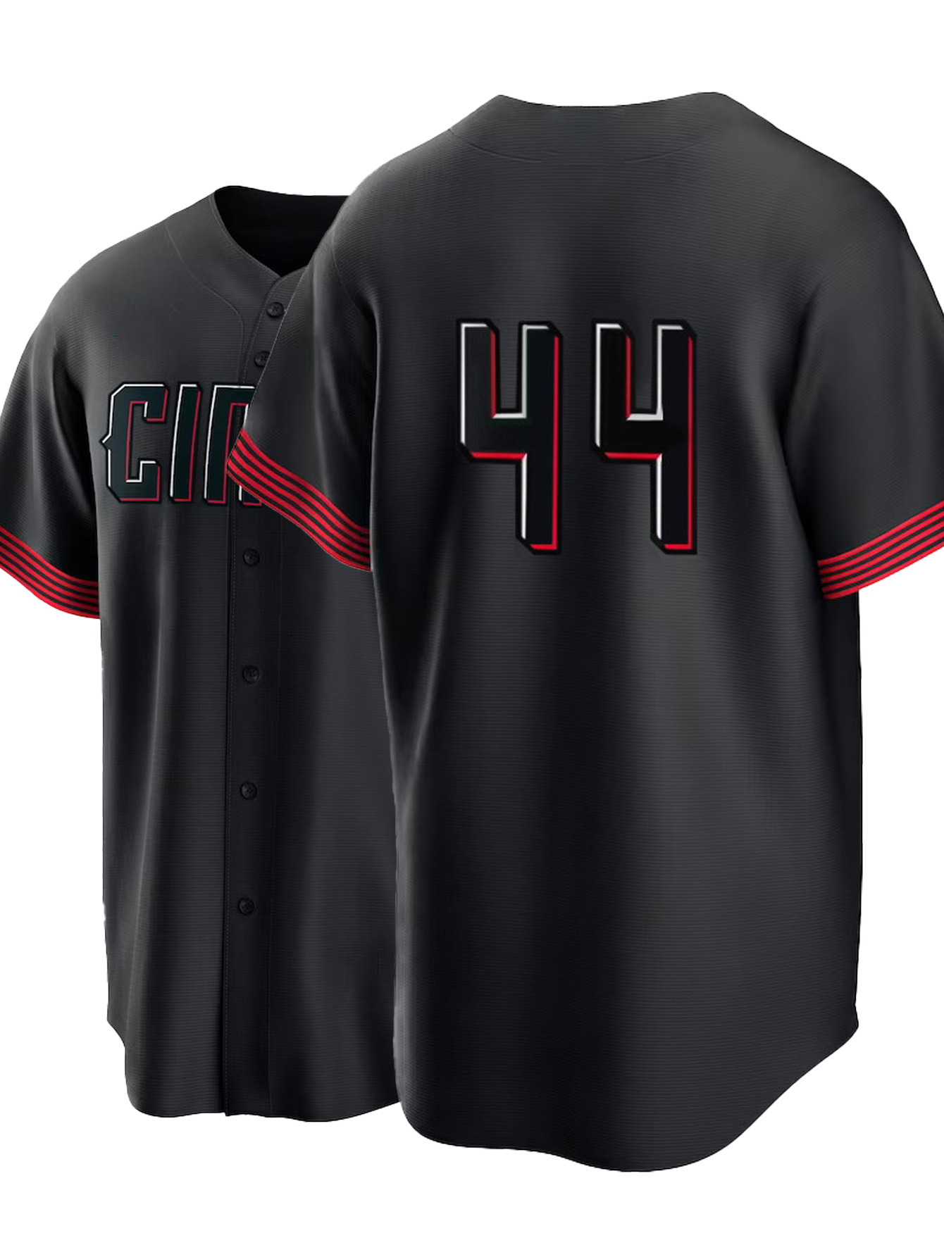 Men'S Black # 44 Baseball Shirt with Classic Letter Embroidery Design, Breathable Button Style Short Sleeved Shirt, Suitable for Training And Games