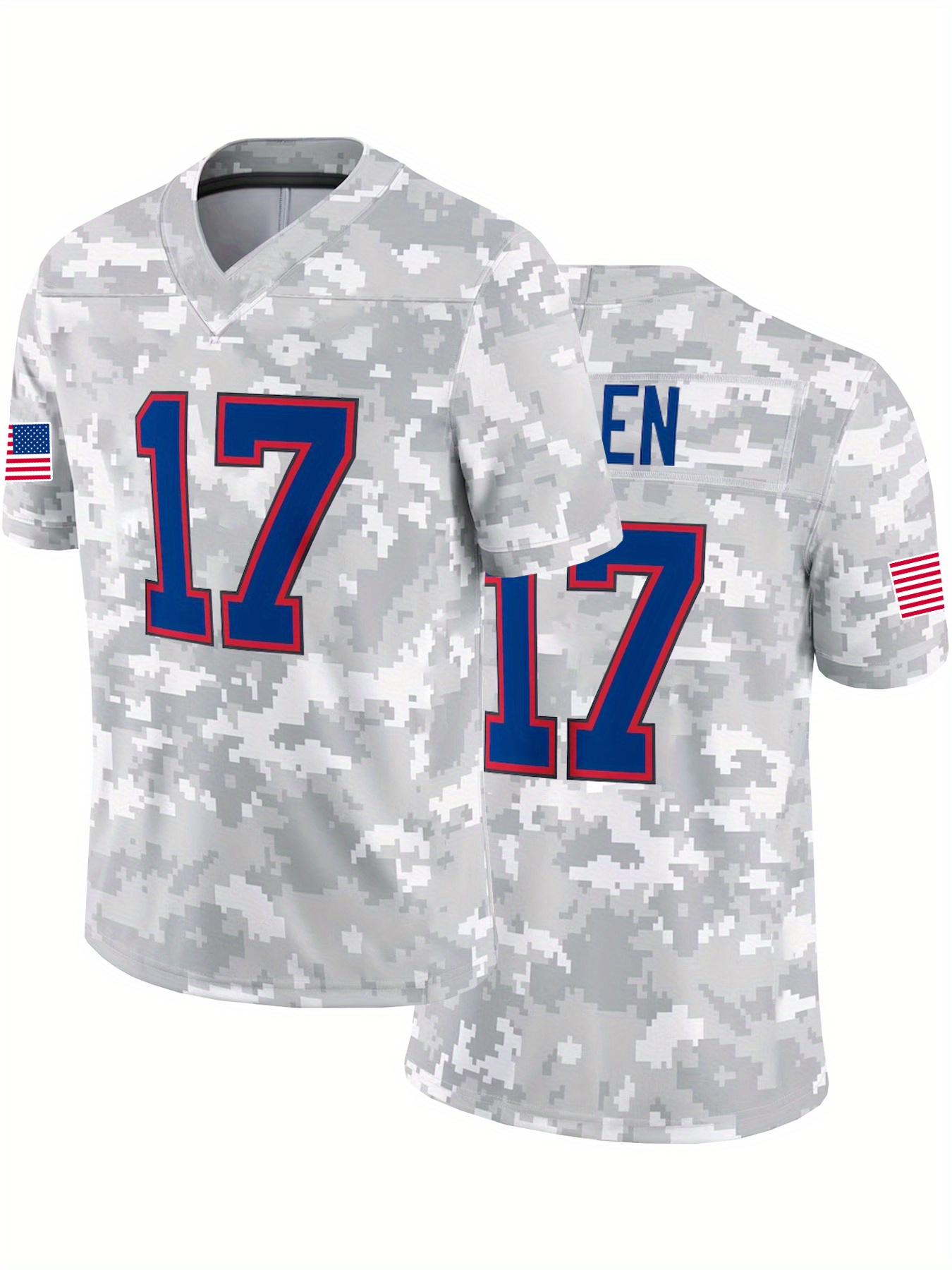 1pc Men's #17 Camo V-Neck Sport Jersey - Breathable Polyester Loose Fit Athletic T-Shirt for Training, Competition, Casual Outings & Holiday Celebrations (Grey)