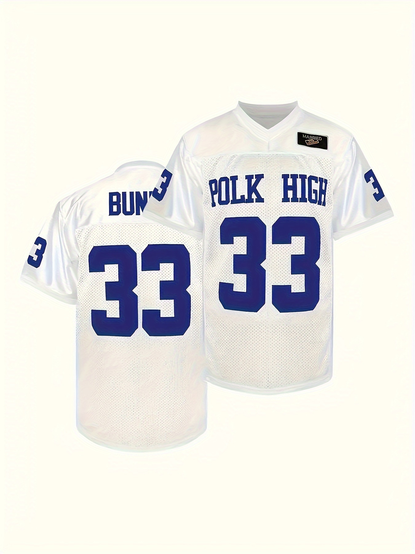 1pc Men'S #33 Polk High Embroidered American Football Jersey - Polyester V-Neck Sports Shirt for Training, Games, Casual Outings - Loose Fit for Adults, Teens, Unisex - Spring, Summer, Fall