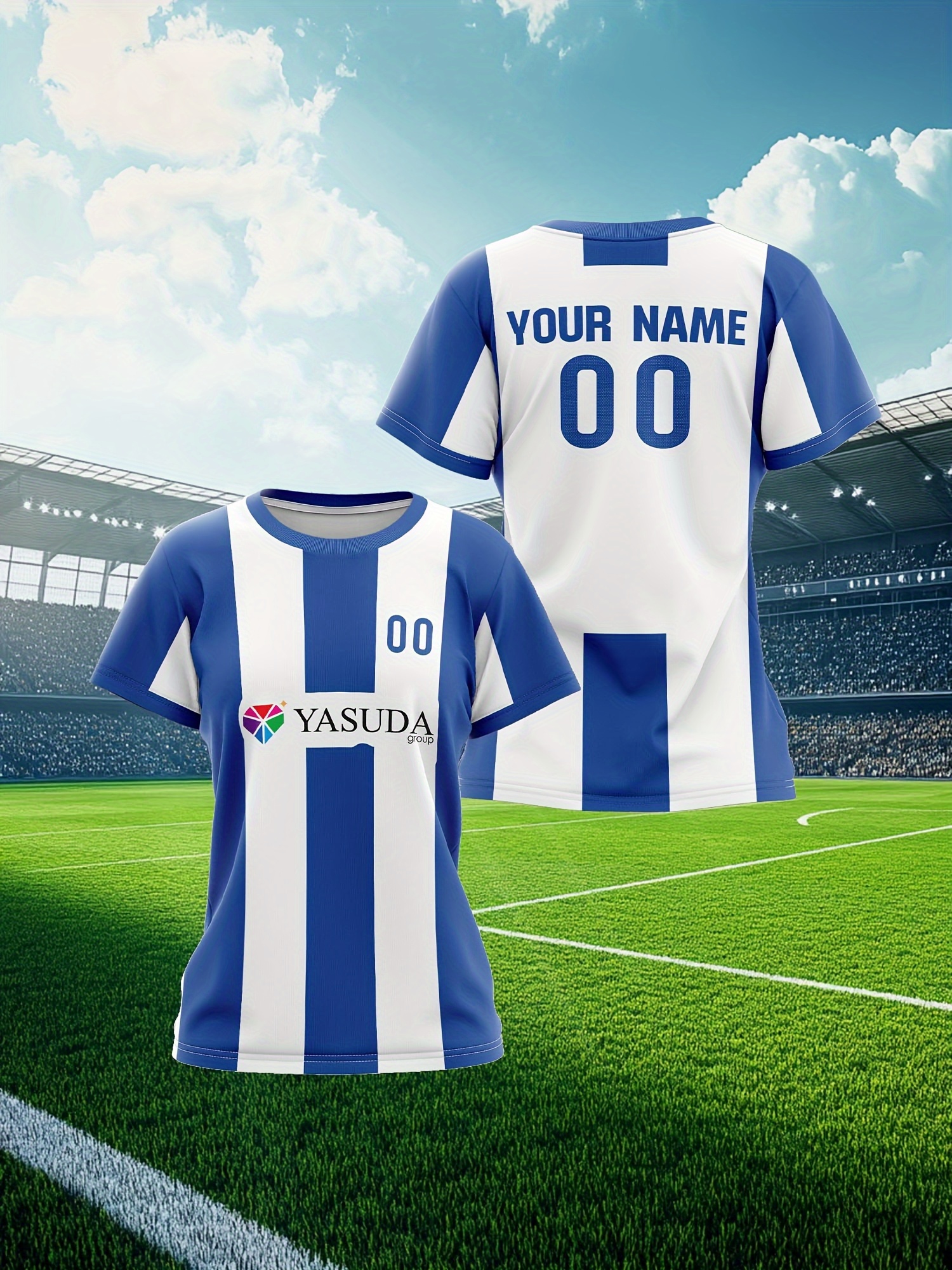 Customizable Women'S Soccer Jersey - Personalized Team & Number, Breathable Quick-Dry Athletic Shirt for Training, Fitness, and Casual Wear, Blue & White Striped Design with YASUDA Logo, Soccer Accessories, PLUS SIZE