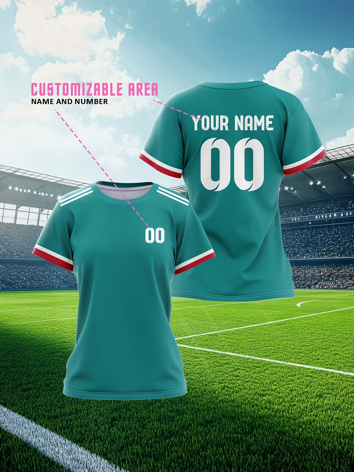 Customized large-sized football jerseys for women, personalized names and numbers, comfortable fit, soft fabric for outdoor sports