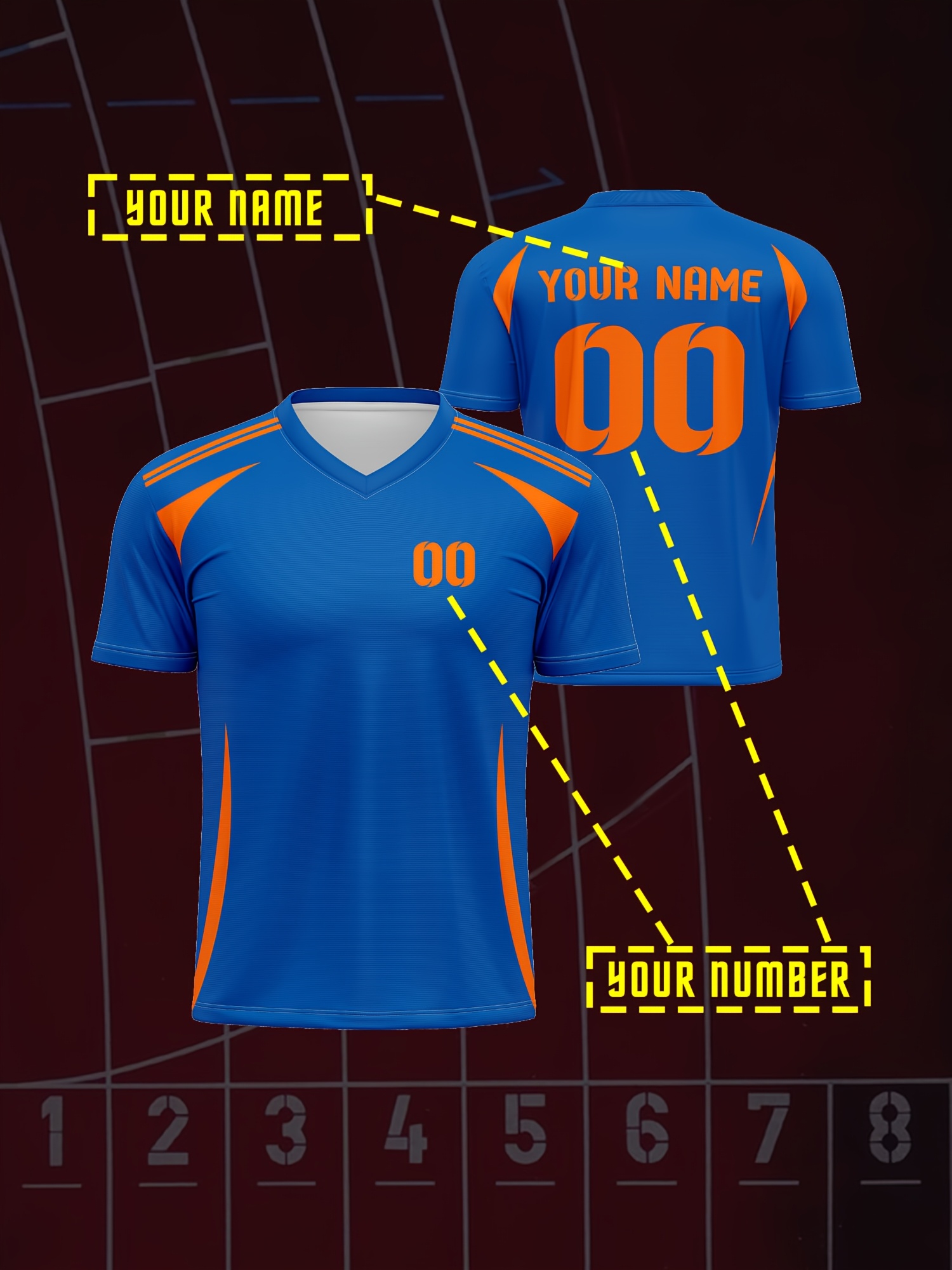 1pc Customizable V-Neck Soccer Jersey for Kids - 100% Polyester Knit Fabric, All-Over Print, Personalized Name & Number, Regular Fit for Boys & Girls, Ideal for Sports, Casual Wear & Outdoor Activities - Spring/Summer/Fall Collection