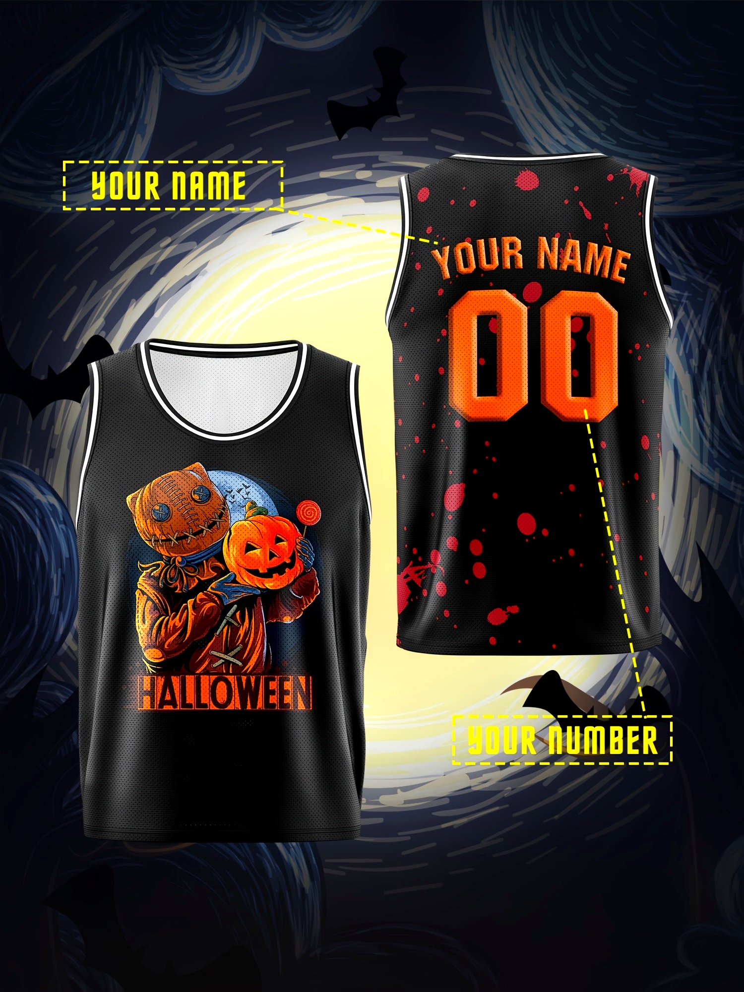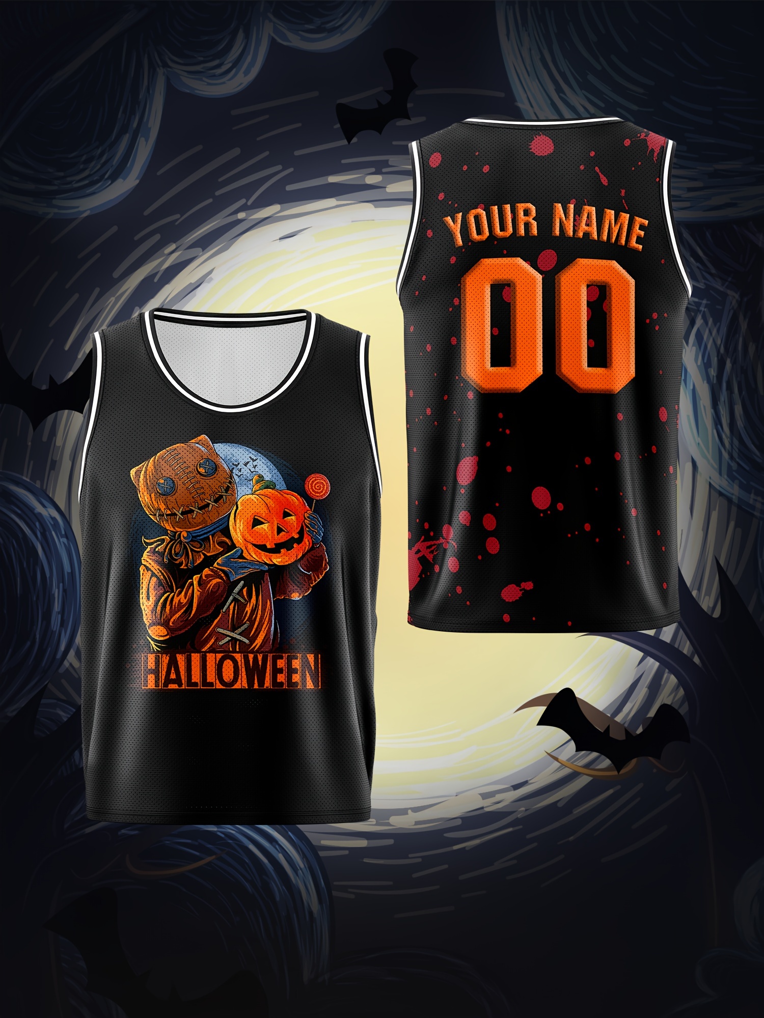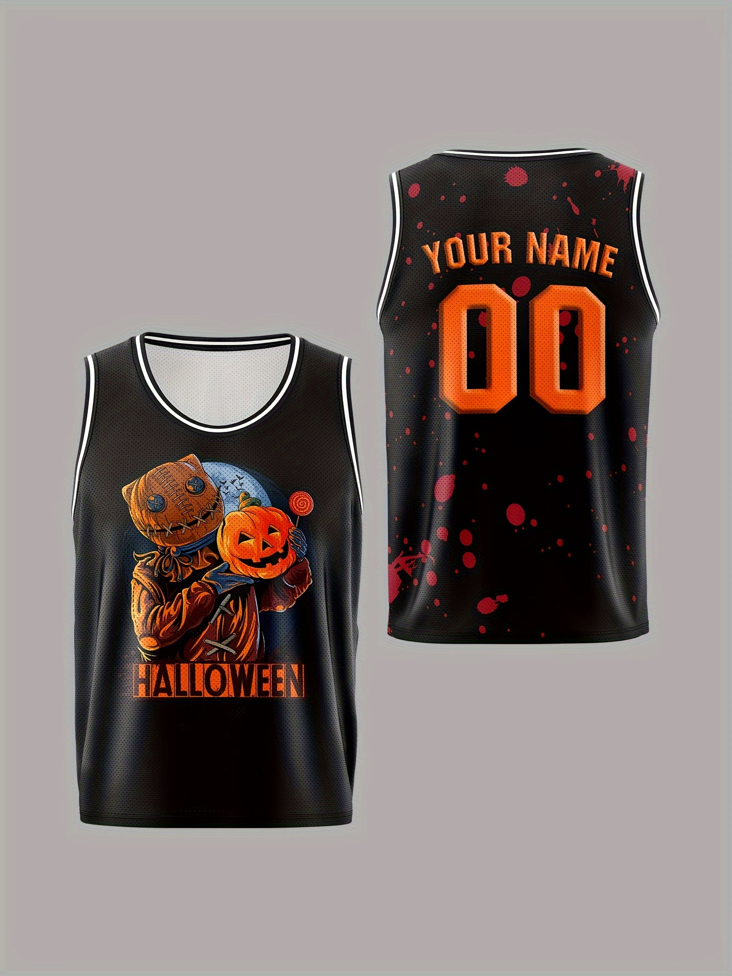 Boys Customizable Name & Number Basketball Jersey, Halloween Themed Performance Tank Top - Polyester, Breathable, Sports & Outdoor Vest for Training, Running & Casual Wear