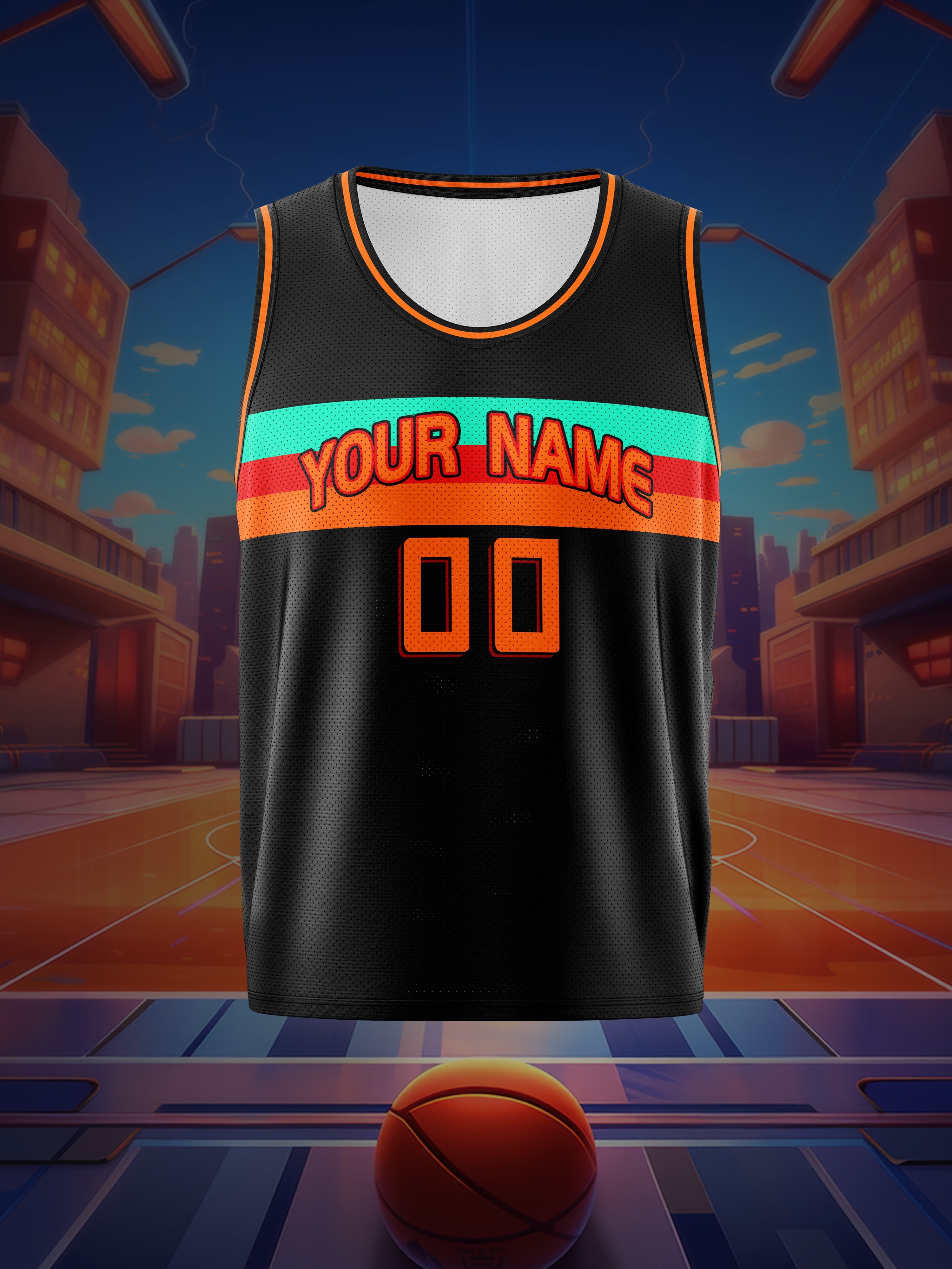 Boys Loose & Breathable Custom Sleeveless Basketball Jersey Shirt, Personalized Colorful Striped Top For Sports & Exercise