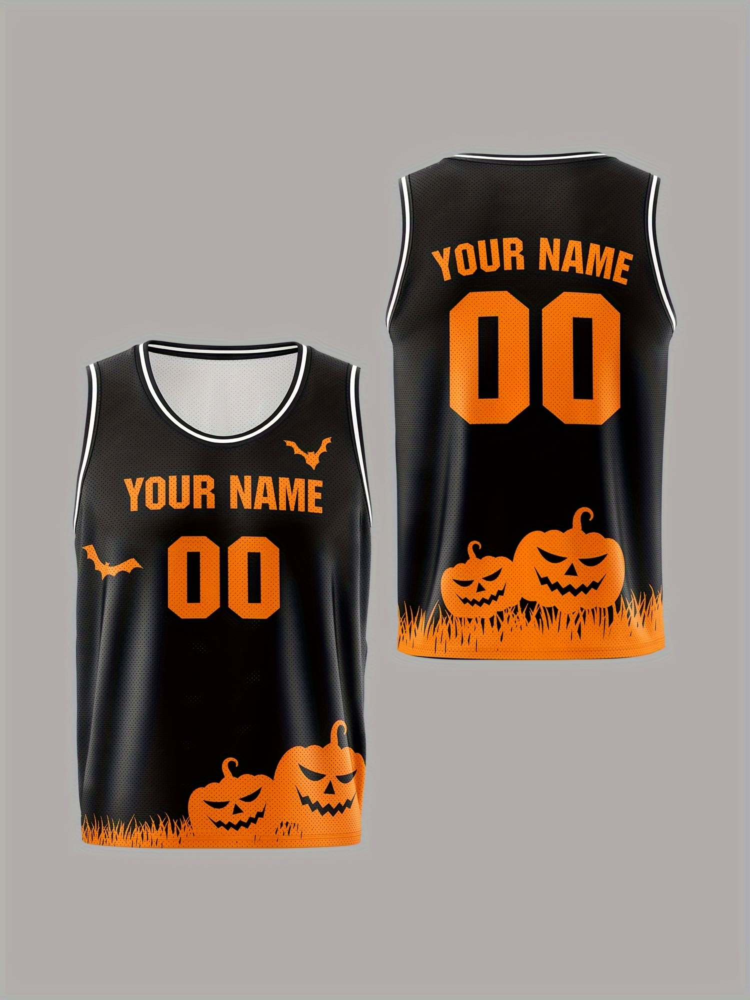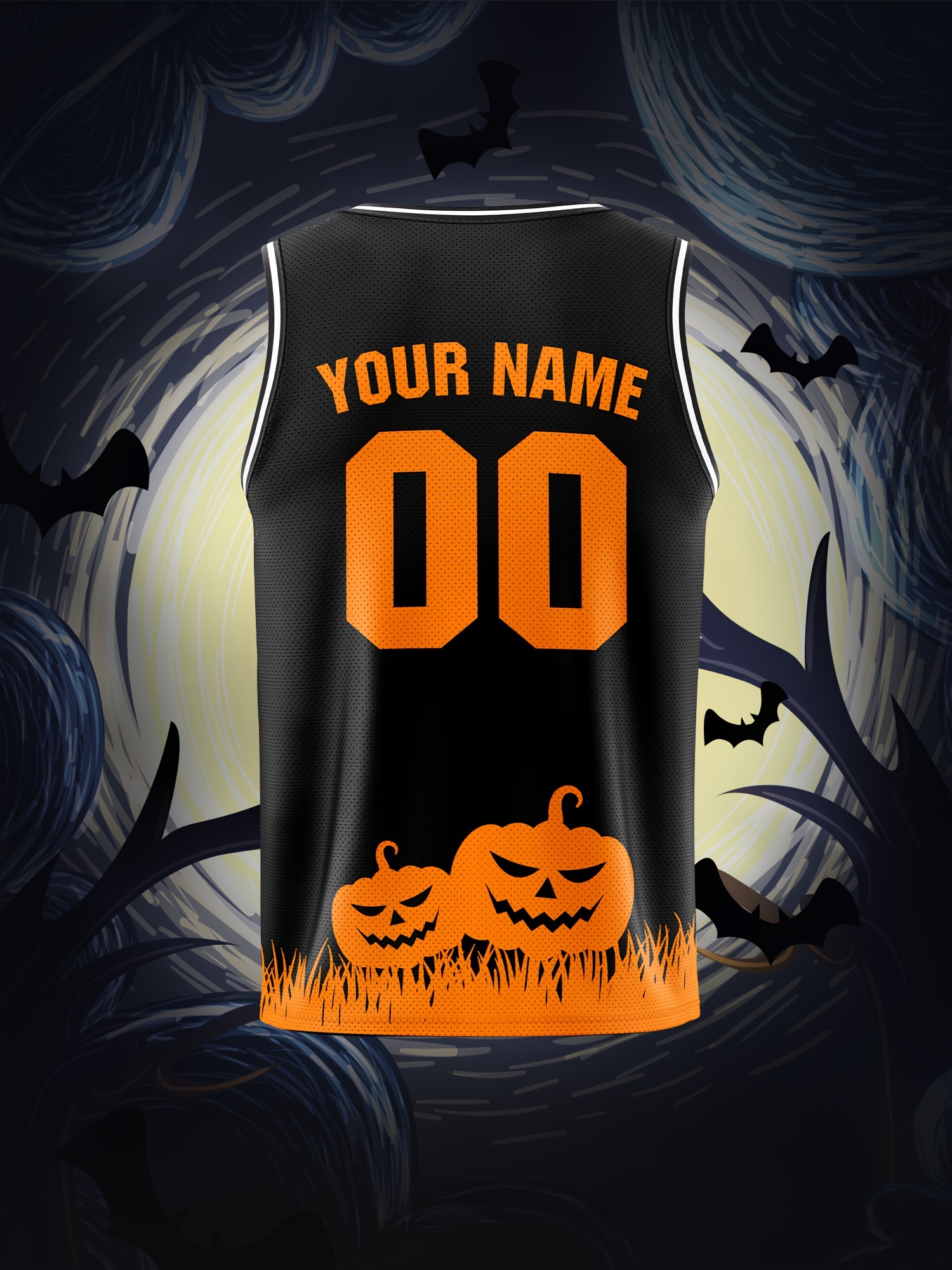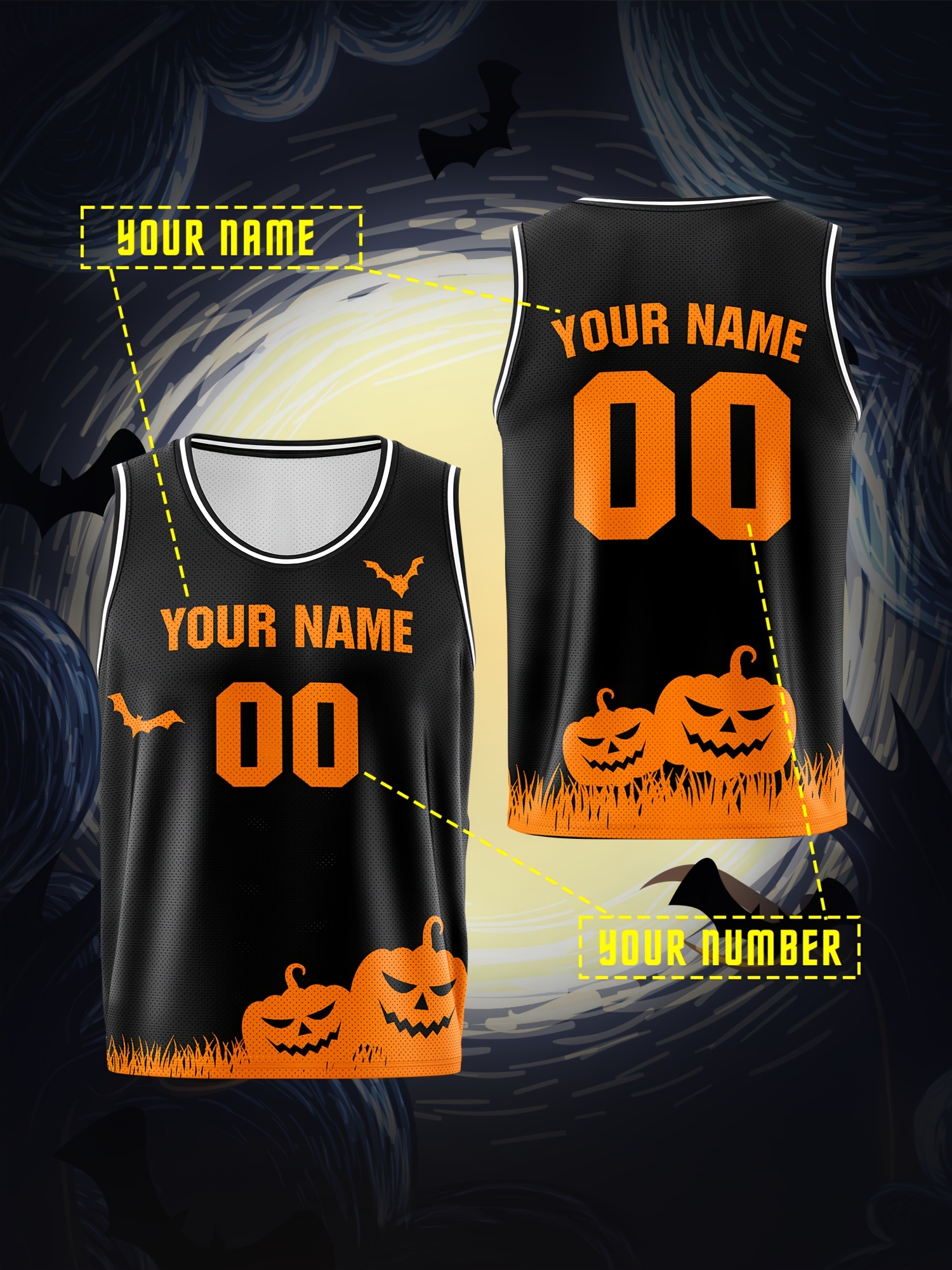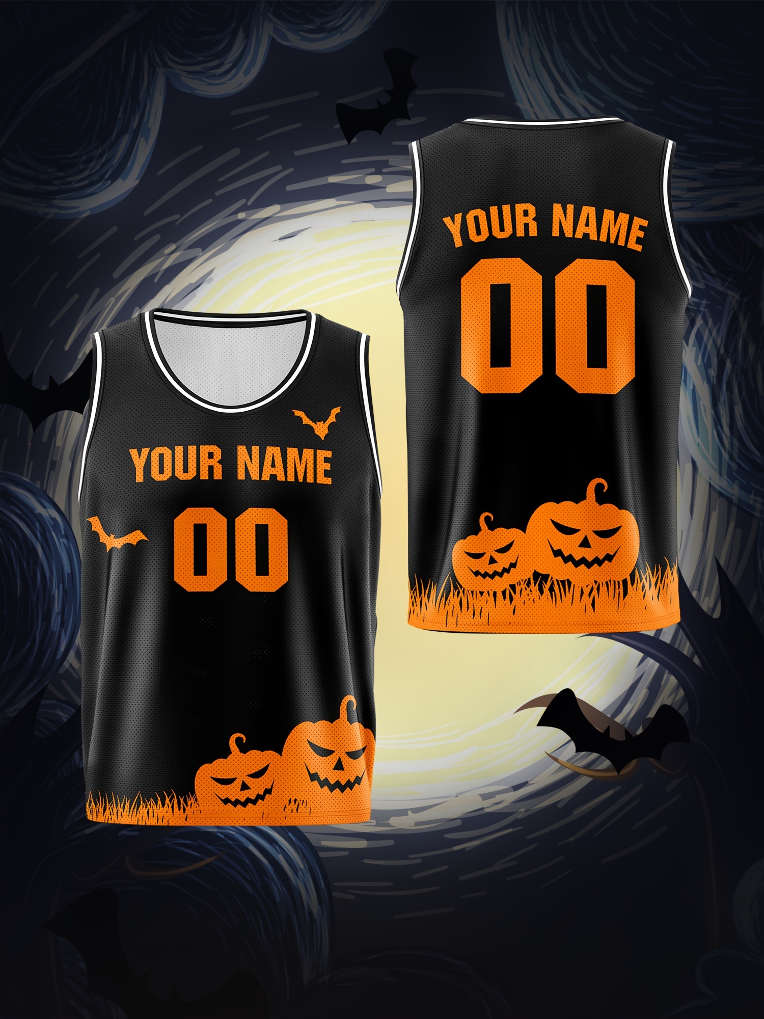 Customizable Kids Halloween Basketball Vest, Polyester 100% Breathable & Washable, Loose Fit Sports Jersey with All-Over Print, Casual & Outdoor Sports Apparel for Boys & Girls, Knit Fabric, Festive Party & Training Gear