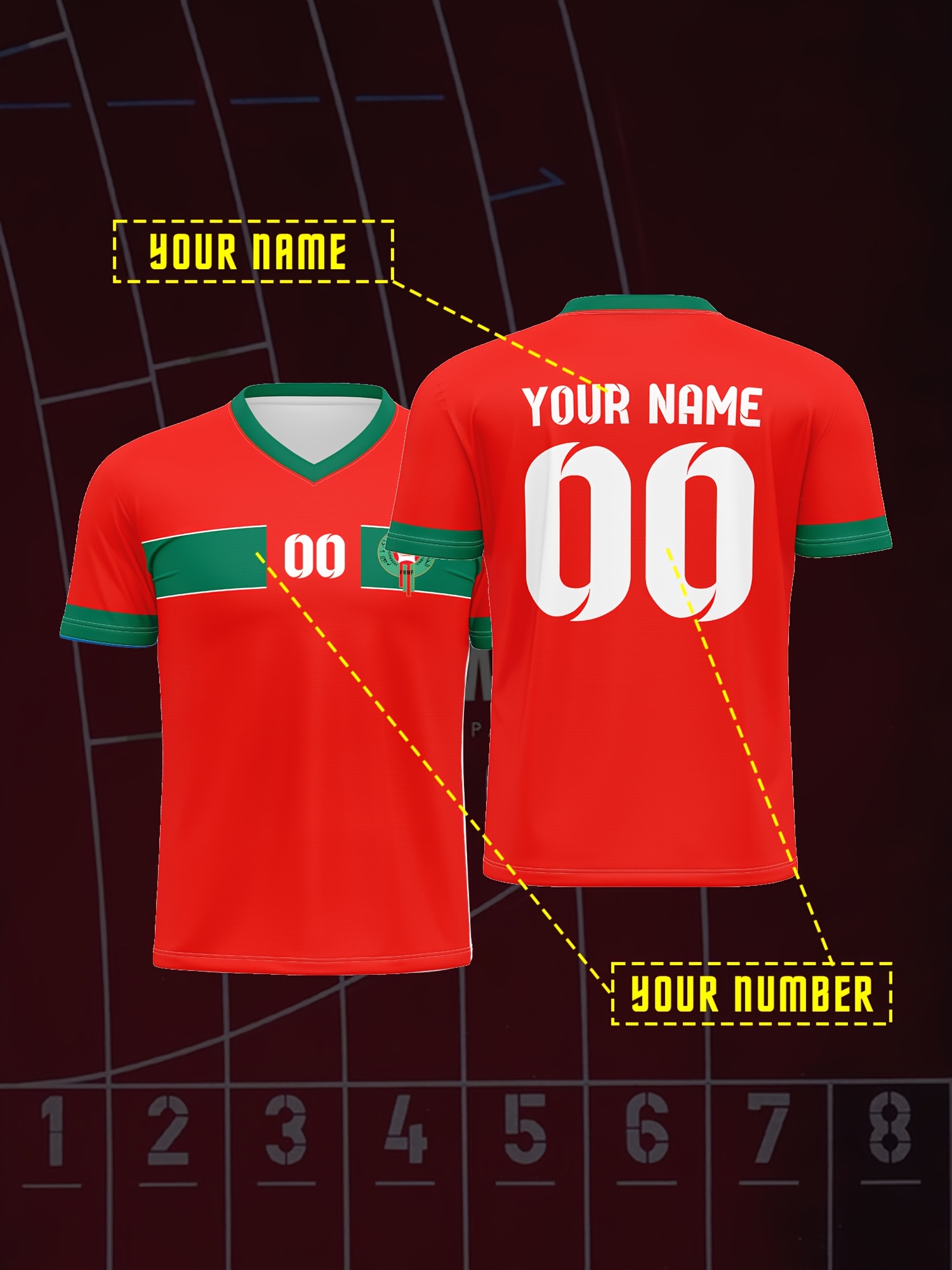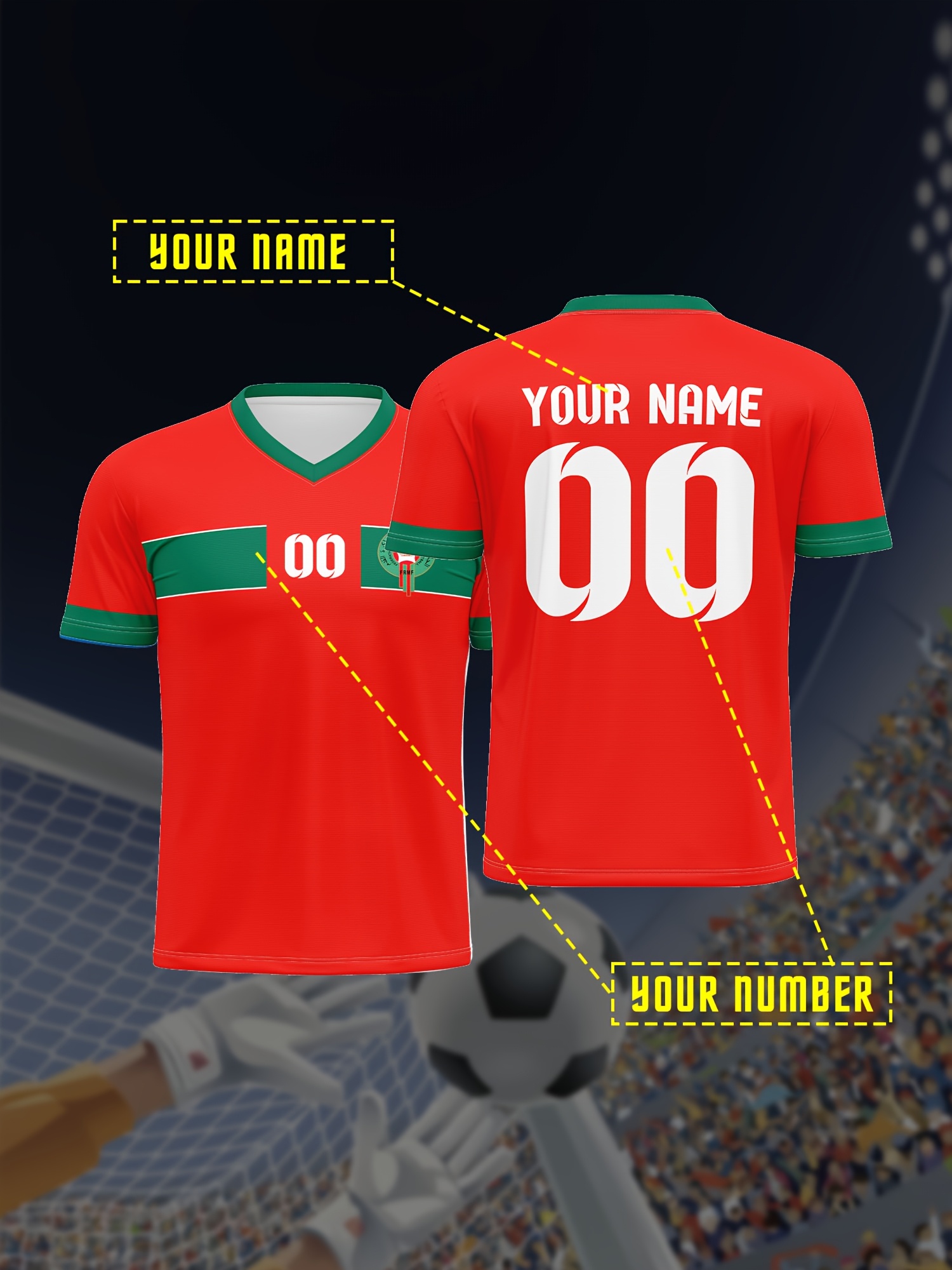[Customized Football Jersey] Polyester Customized Name And Number V-neck Football Jersey | Medium Stretch All Over Print Sports Shirt for Boys And Girls, Preppy Casual Street Style