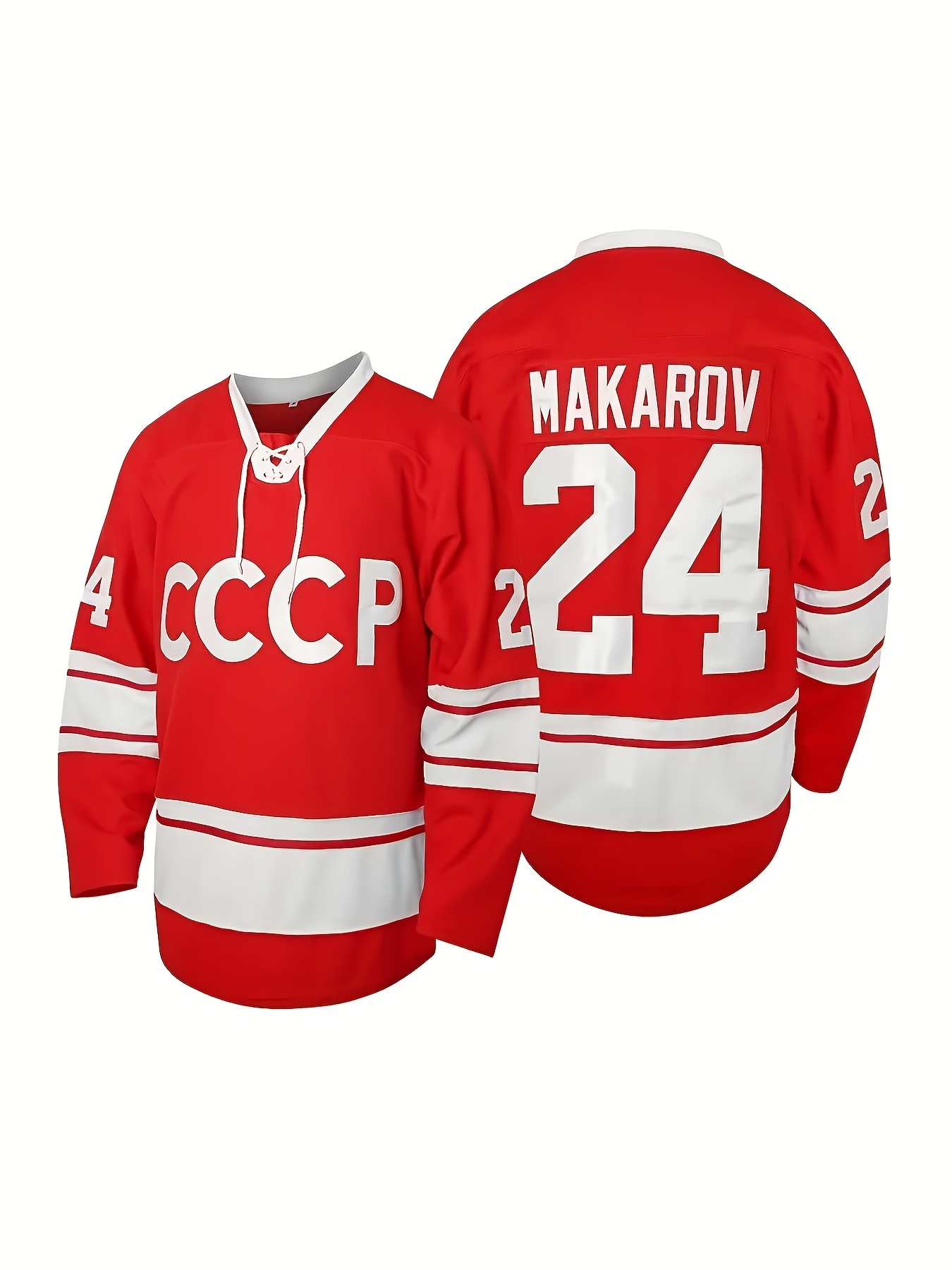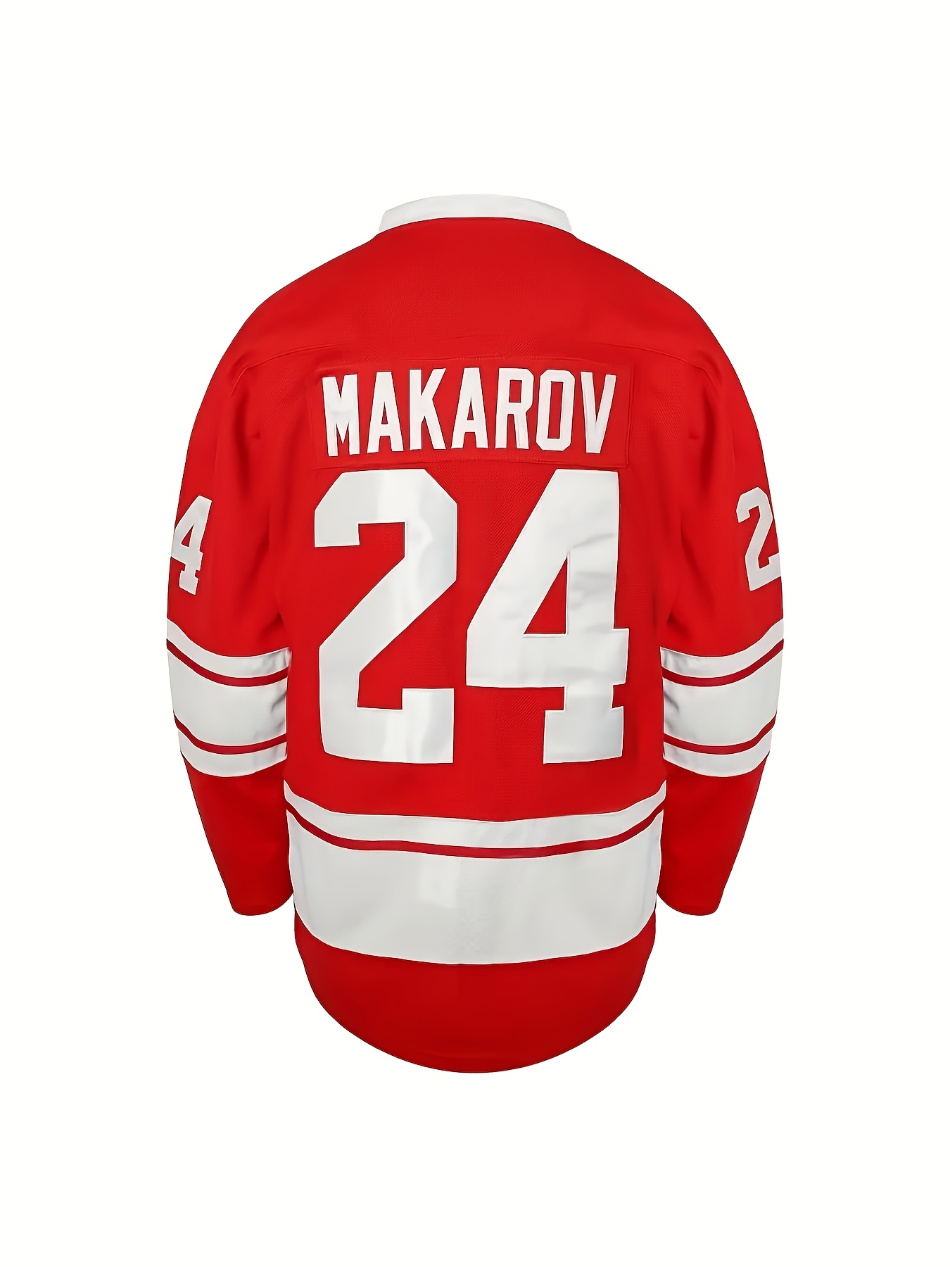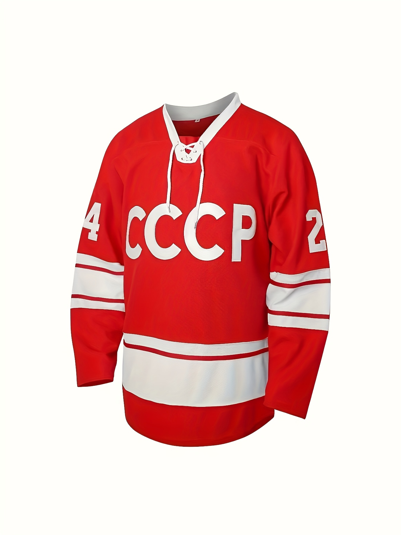 Men'S #24 Red Embroidered Ice Hockey Jersey, Polyester V-Neck Long Sleeve Sports Shirt, Slight Stretch Knit Fabric, Universal Fit, for Casual & Athletic Wear, Four Seasons