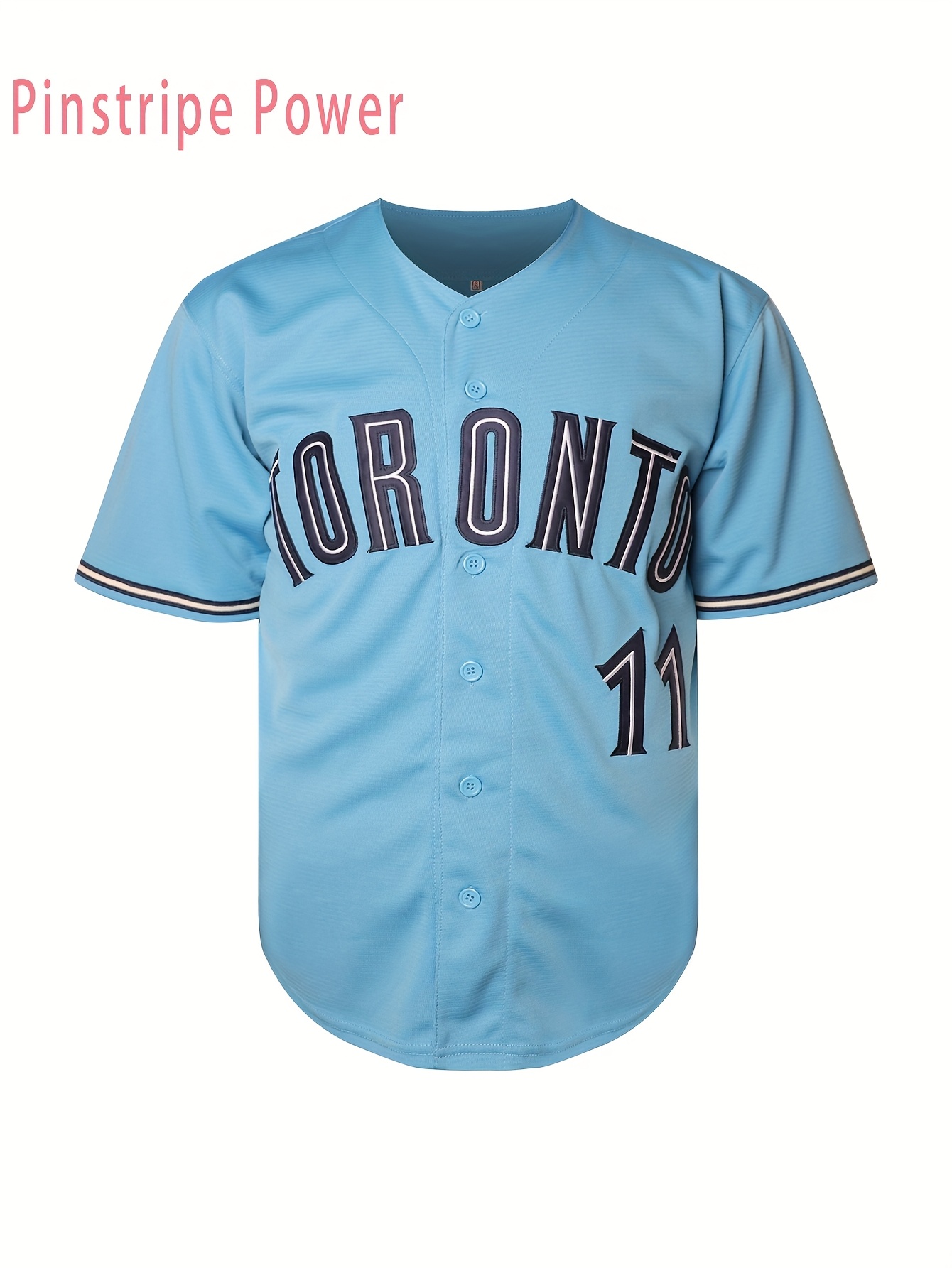 Men's #11 Blue Embroidered Baseball Jersey - V-Neck Button-Up Loose Fit Polyester Shirt for Training, Casual & Outdoor Sports | Machine Washable, Sizes S-3XL