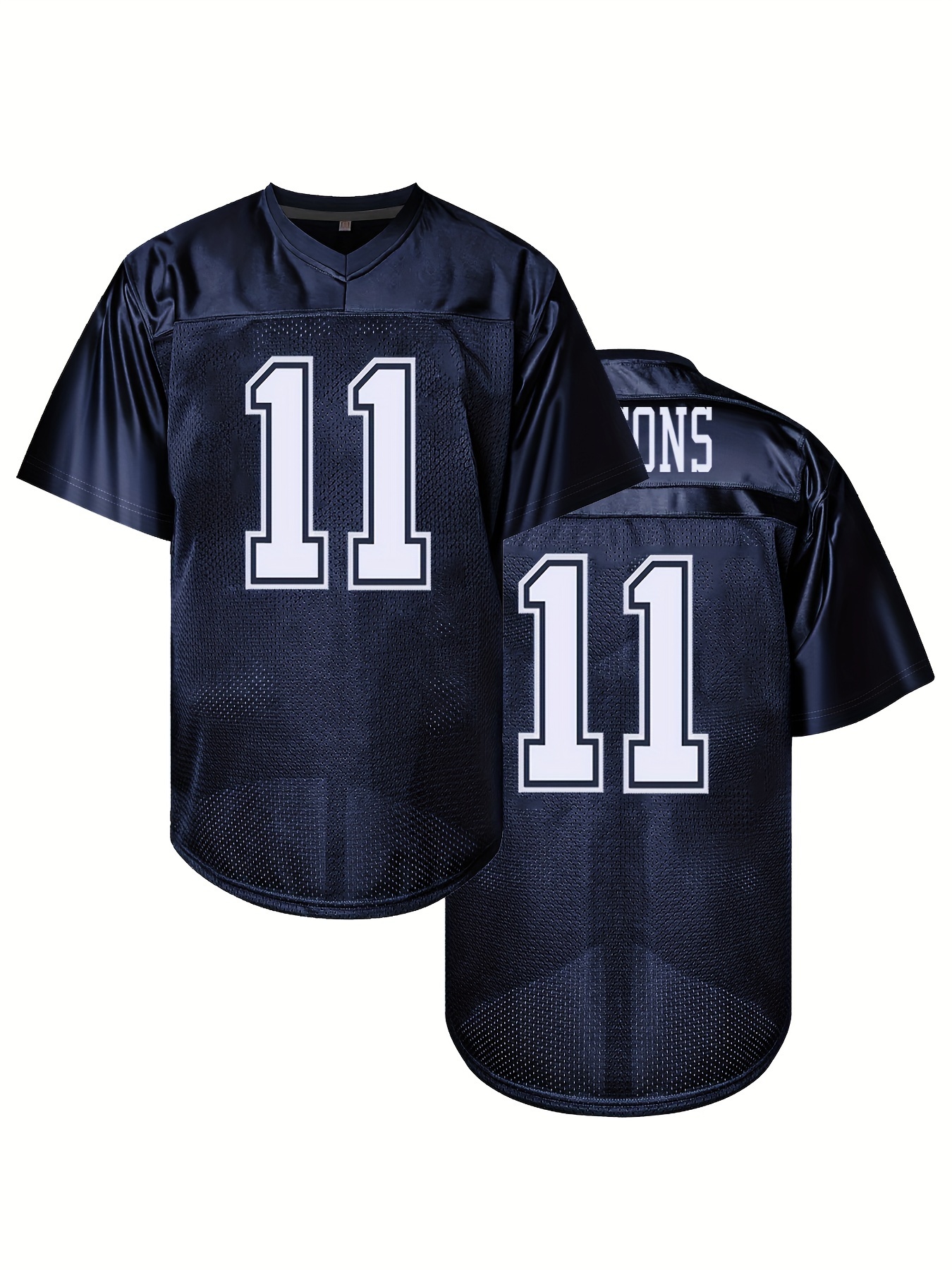 Men'S #11 Deep Blue Breathable Rugby Jersey - V-Neck, Short Sleeve, Classic Embroidered American Football Shirt for Training & Matches