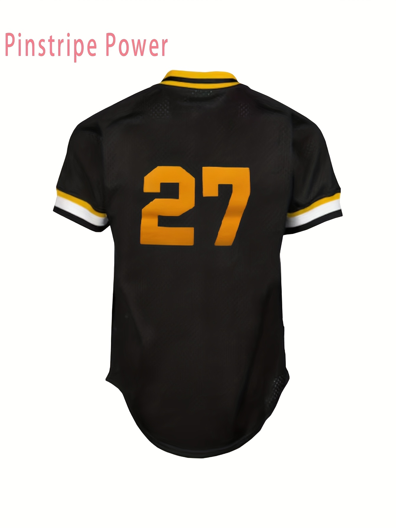 Men'S # 27 Black Retro Baseball Shirt - Breathable And Comfortable Polyester Fiber V-Neck Button Sports Shirt S-3XL Perfect For Team Training And Casual Wearing