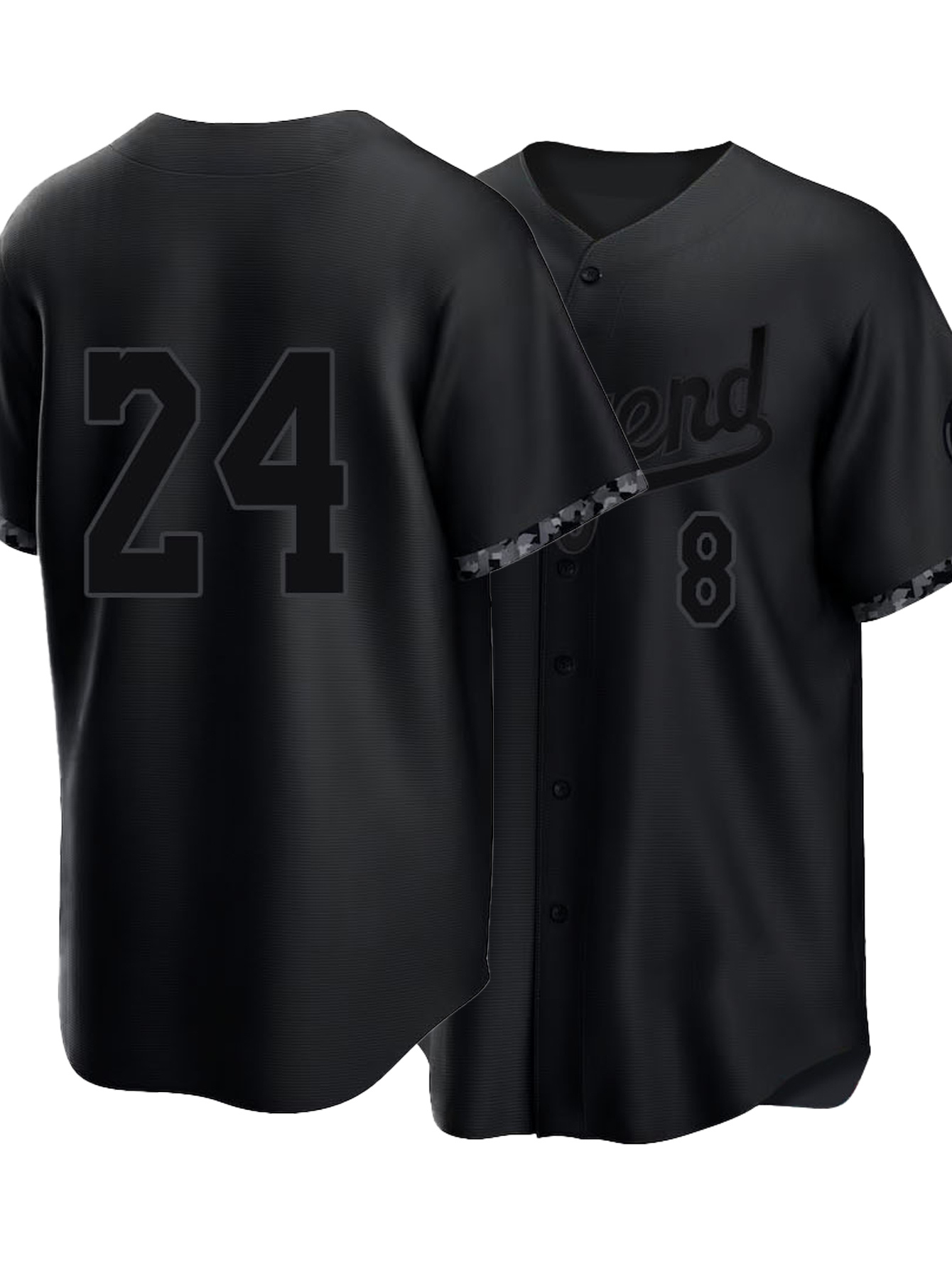 Men'S All Black # 8-24 Baseball Shirt, Classic Letter Embroidery Design, Button Style Short Sleeved Breathable Shirt, for Training And Competition Use