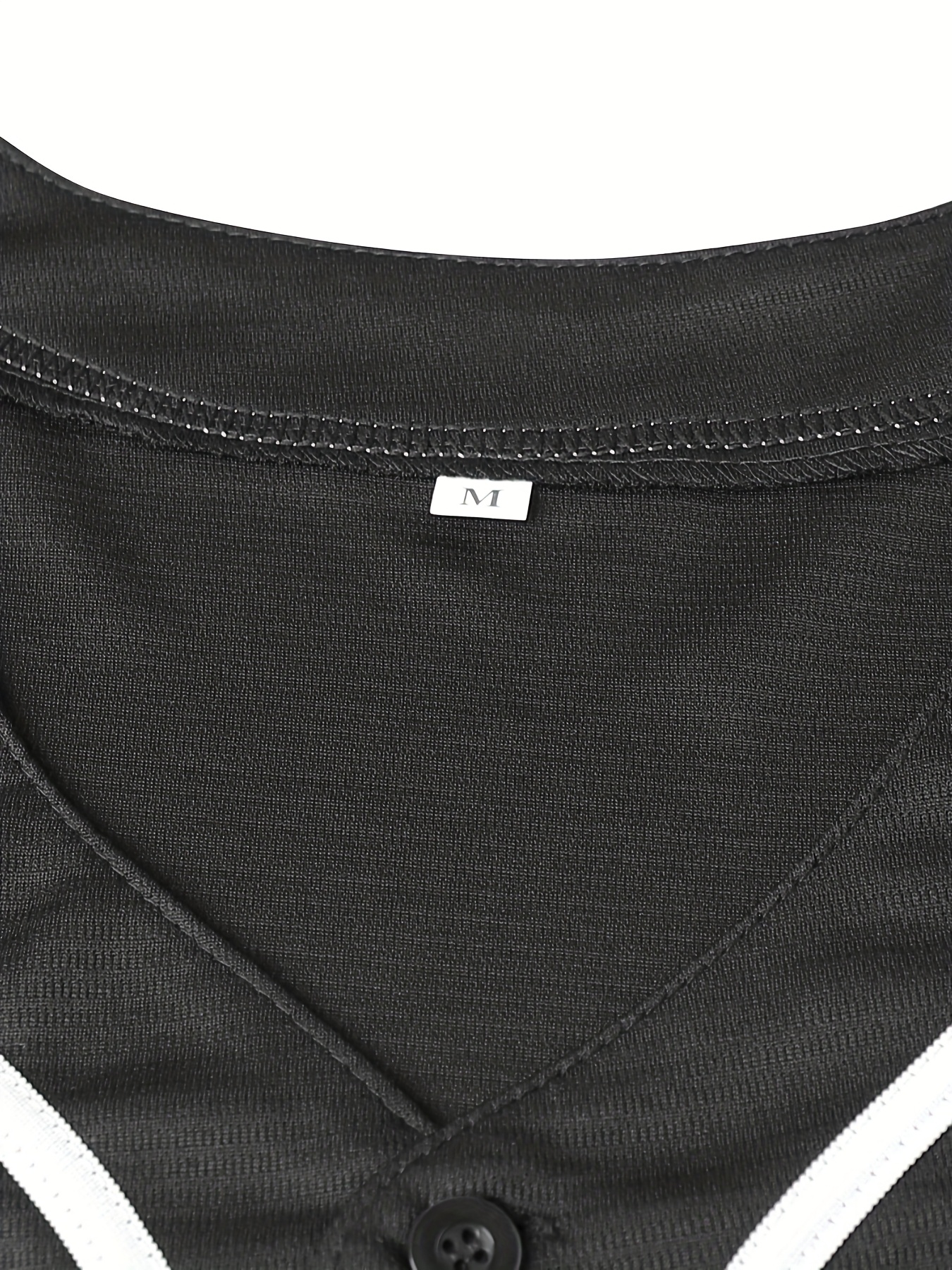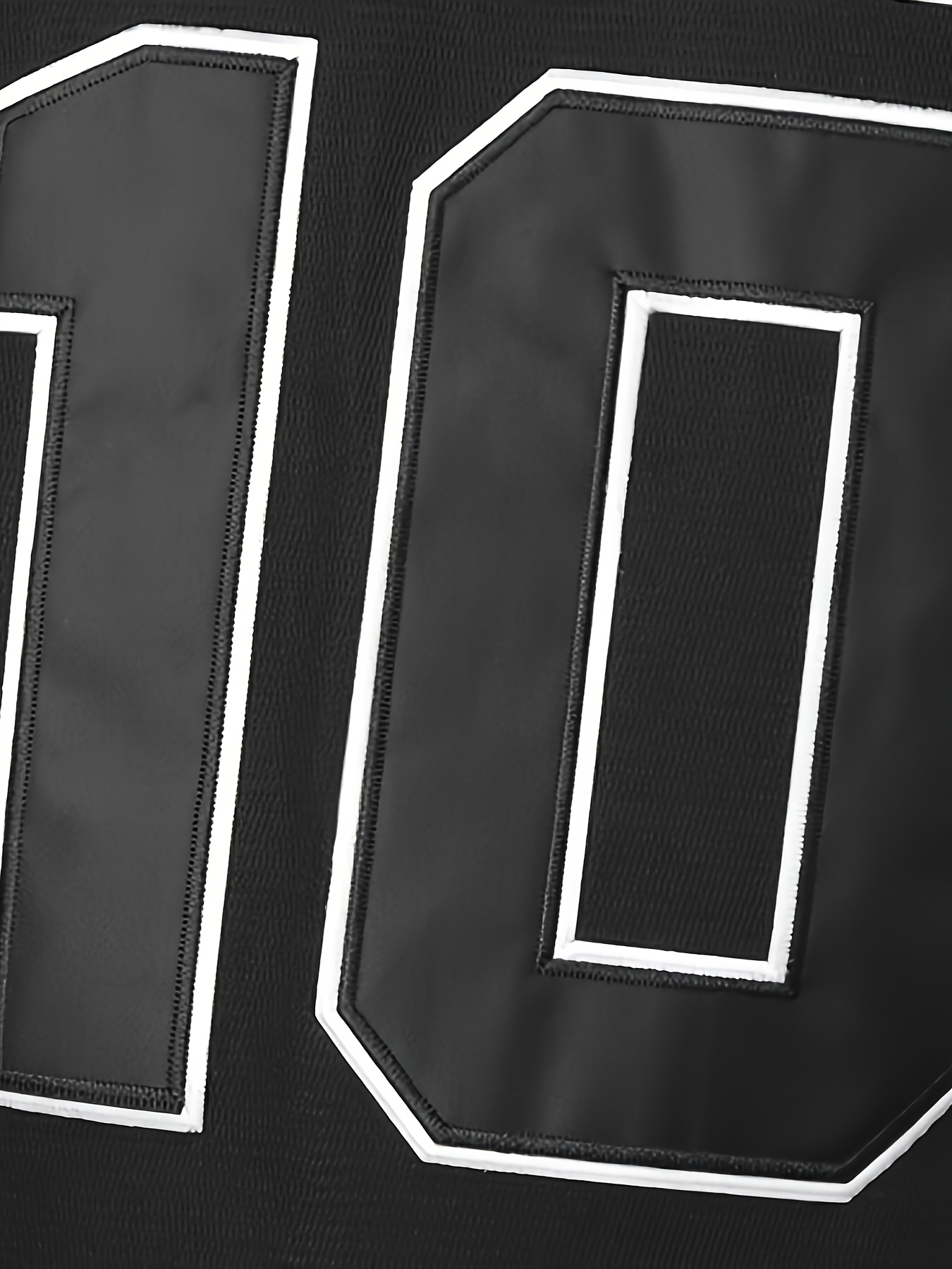Men's Black #10 Baseball Jersey with Embroidered Letters & Numbers - Breathable V-Neck Loose Fit, Adjustable Button Closure, Machine Washable for Training, Games, Casual Wear (S-3XL)