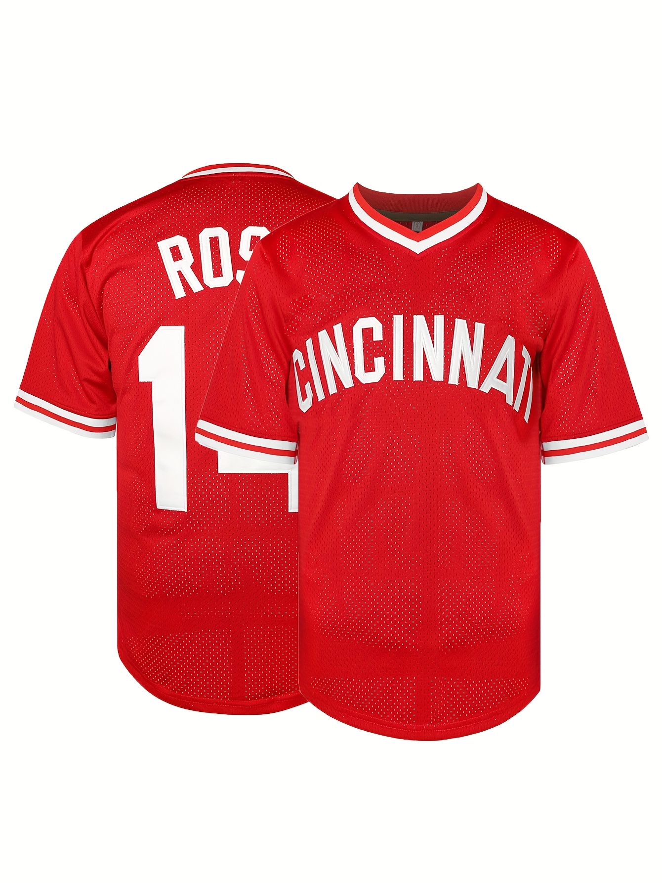 Men'S Breathable Baseball Jersey With Embroidered #14 & ROSE Design, 100% Polyester V-Neck Short Sleeve Shirt