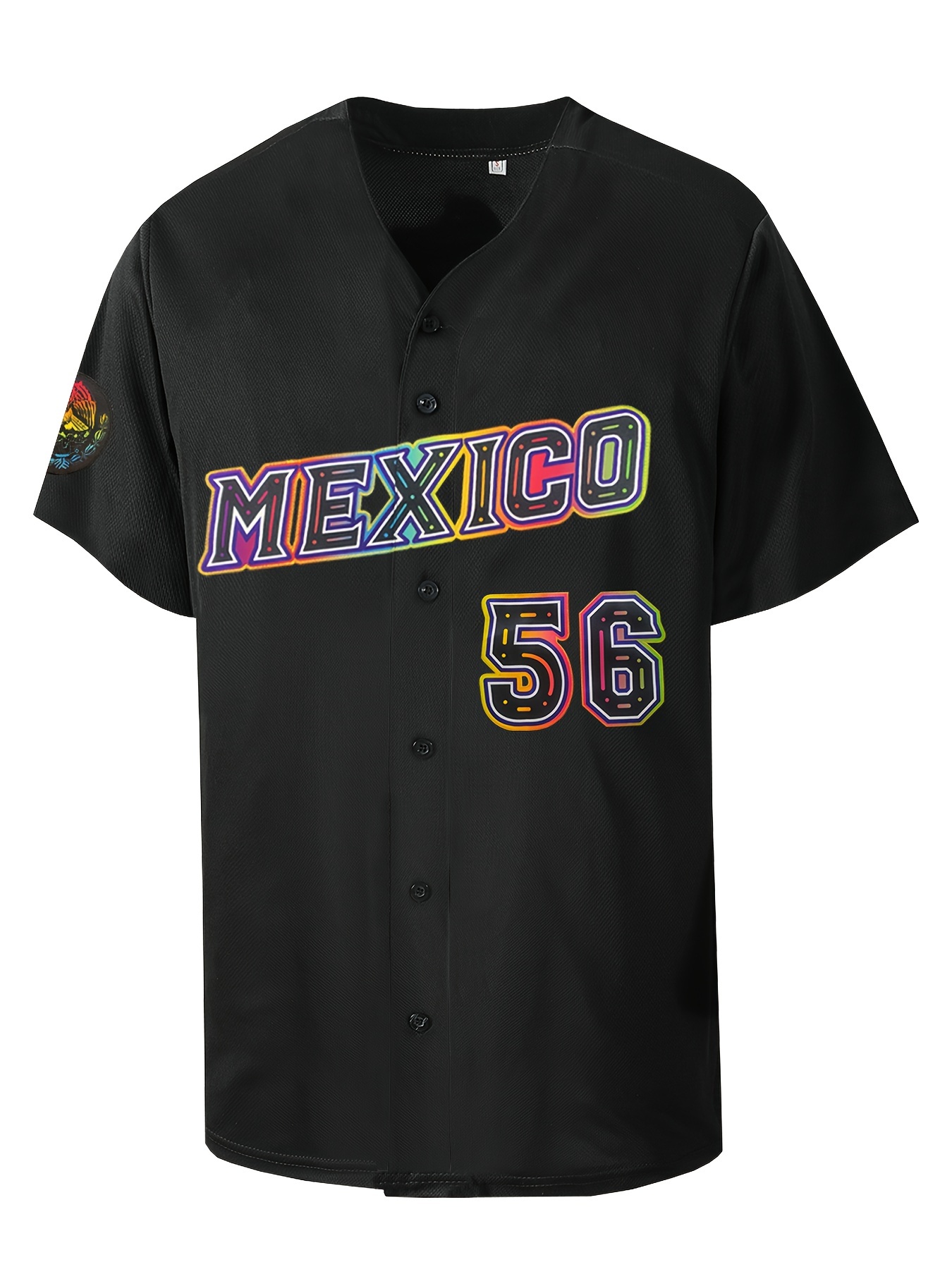 Men'S Classic #56 Mexico Baseball Jersey - Vibrant Retro Embroidery, Breathable Polyester, Short Sleeve V-Neck with Button Closure - Ideal for Training, Competition & Casual Wear