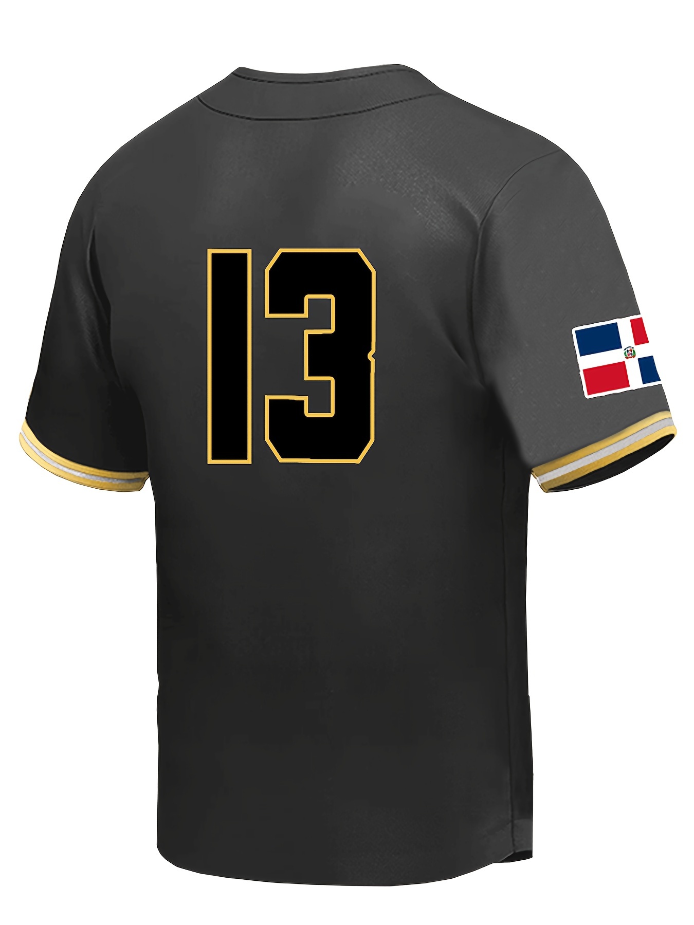 Men'S Dominican #13 Black Baseball Jersey, 100% Polyester V-Neck Knit Fabric T-Shirt, Embroidered Letter & Number Design, Short Sleeve, Breathable, Loose Fit for Sports, Party, Casual Wear - Universal Adult Sports Top