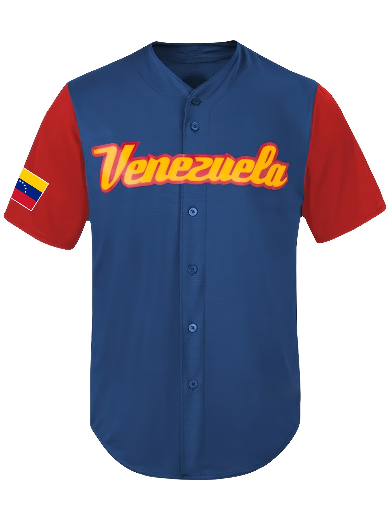 Men'S Number 13 & Venezuela Embroidery Color Block Baseball Jersey, Classic Breathable Short Sleeve T-Shirt For Training Competition