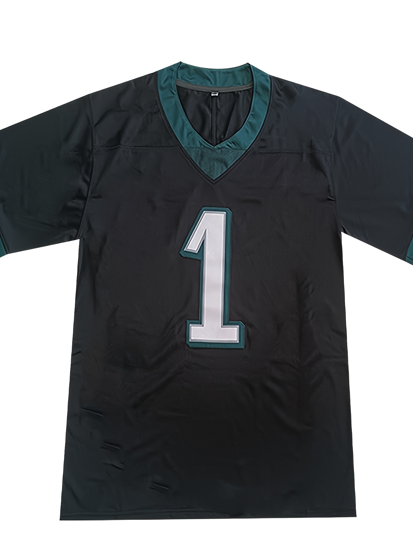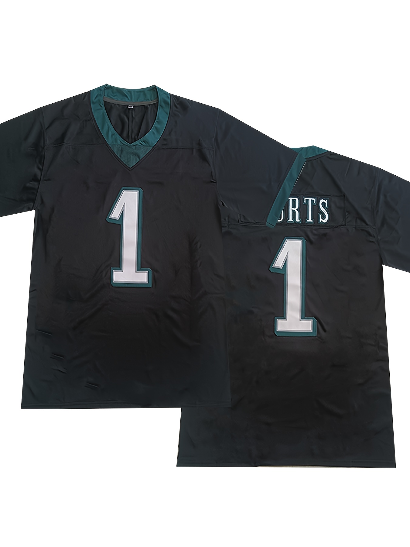 Men'S Polyester Sports Jersey #1 - V-Neck Embroidered Football Shirt, Breathable Knit Fabric for Casual and Athletic Activities - Slight Stretch, Loose Fit for Adults and Teens, Suitable for All Seasons