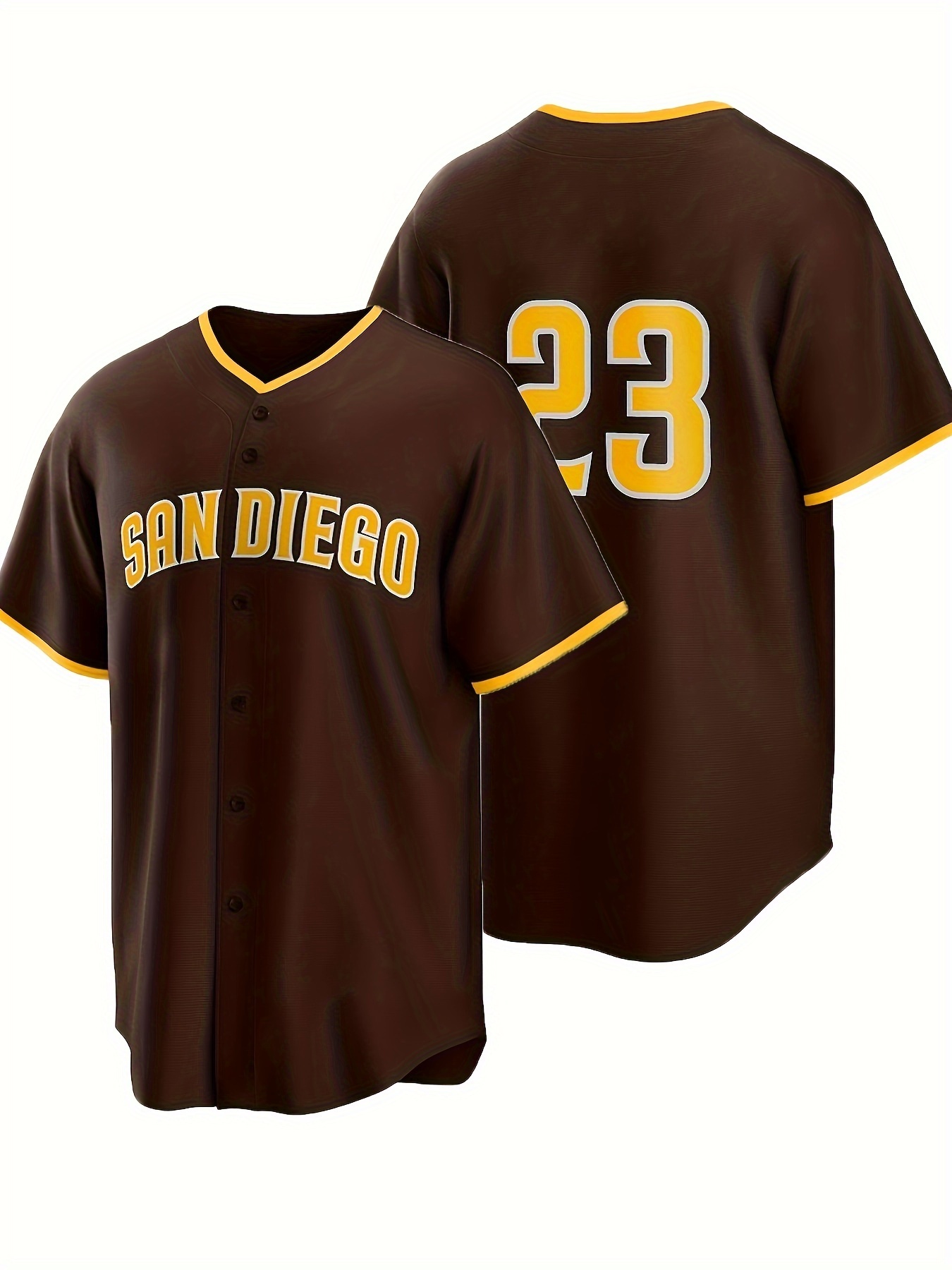 Men'S SANDIEGO #23 Baseball Jersey, Classic Retro Letter Embroidery Design Breathable Short Sleeve T-Shirt For Training Competition