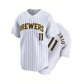 Men'S #1 Striped Baseball Jersey, 100% Polyester V-Neck Short Sleeve T-Shirt with Lettering, Breathable Knit Fabric for Sports & Casual Wear, Loose Fit Button-Up Top for All Seasons