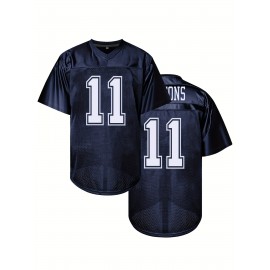 Men'S #11 Deep Blue Breathable Rugby Jersey - V-Neck, Short Sleeve, Classic Embroidered American Football Shirt for Training & Matches