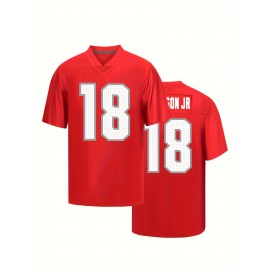 Men'S #18 V-Neck Sports Jersey - Polyester, Embroidered, Breathable, Short Sleeve Shirt for Running, Training, Hiking, Casual & Festive Occasions, Universal Fit for Adult & Male - Red