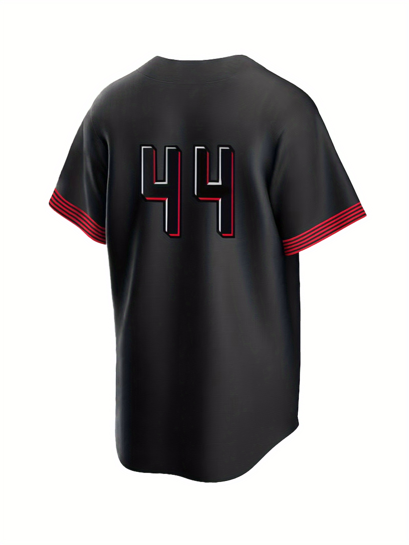 Men'S Black # 44 Baseball Shirt with Classic Letter Embroidery Design, Breathable Button Style Short Sleeved Shirt, Suitable for Training And Games