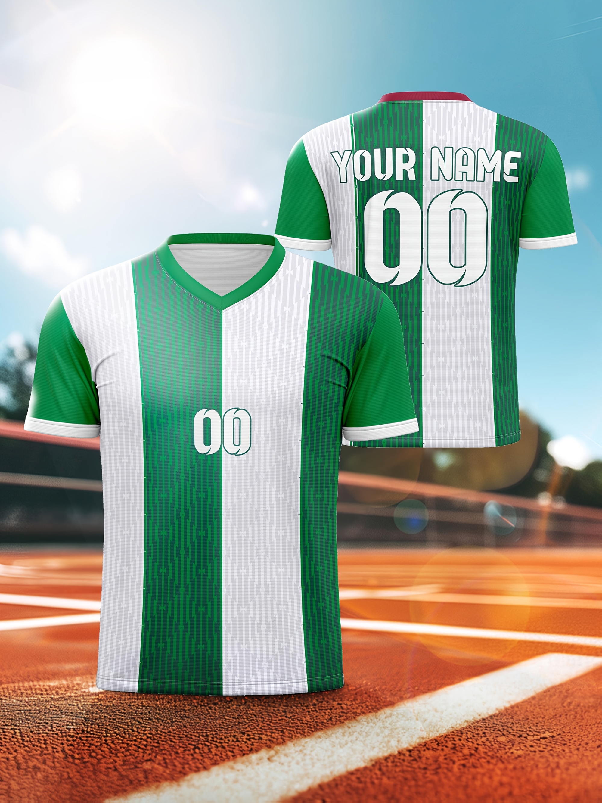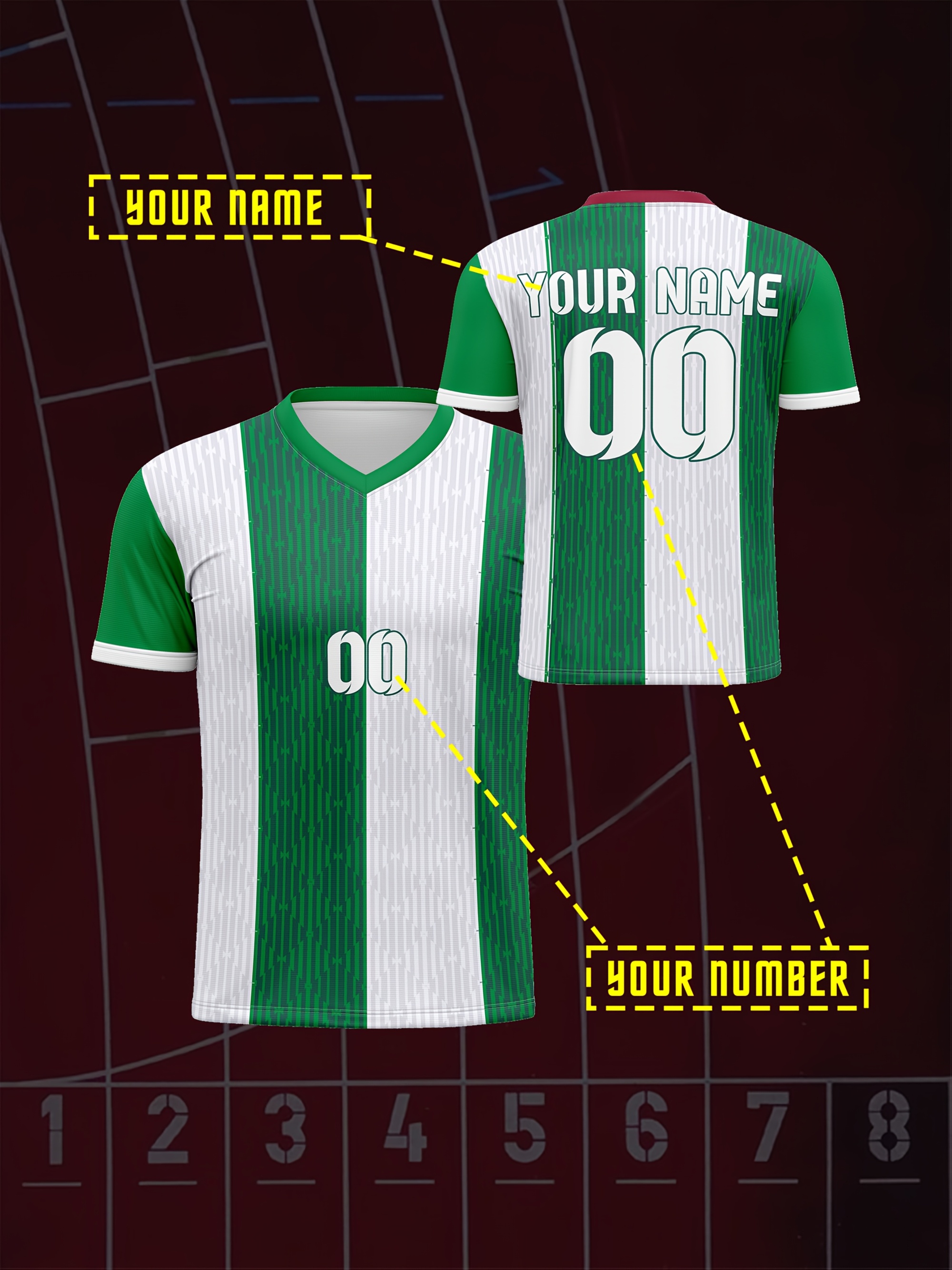 Customizable Kids Soccer Jersey, V-Neck Polyester Football Top with Personalized Name & Number, Medium Stretch, All-Season Sports Shirt for Boys & Girls, Casual Training & Outdoor Wear