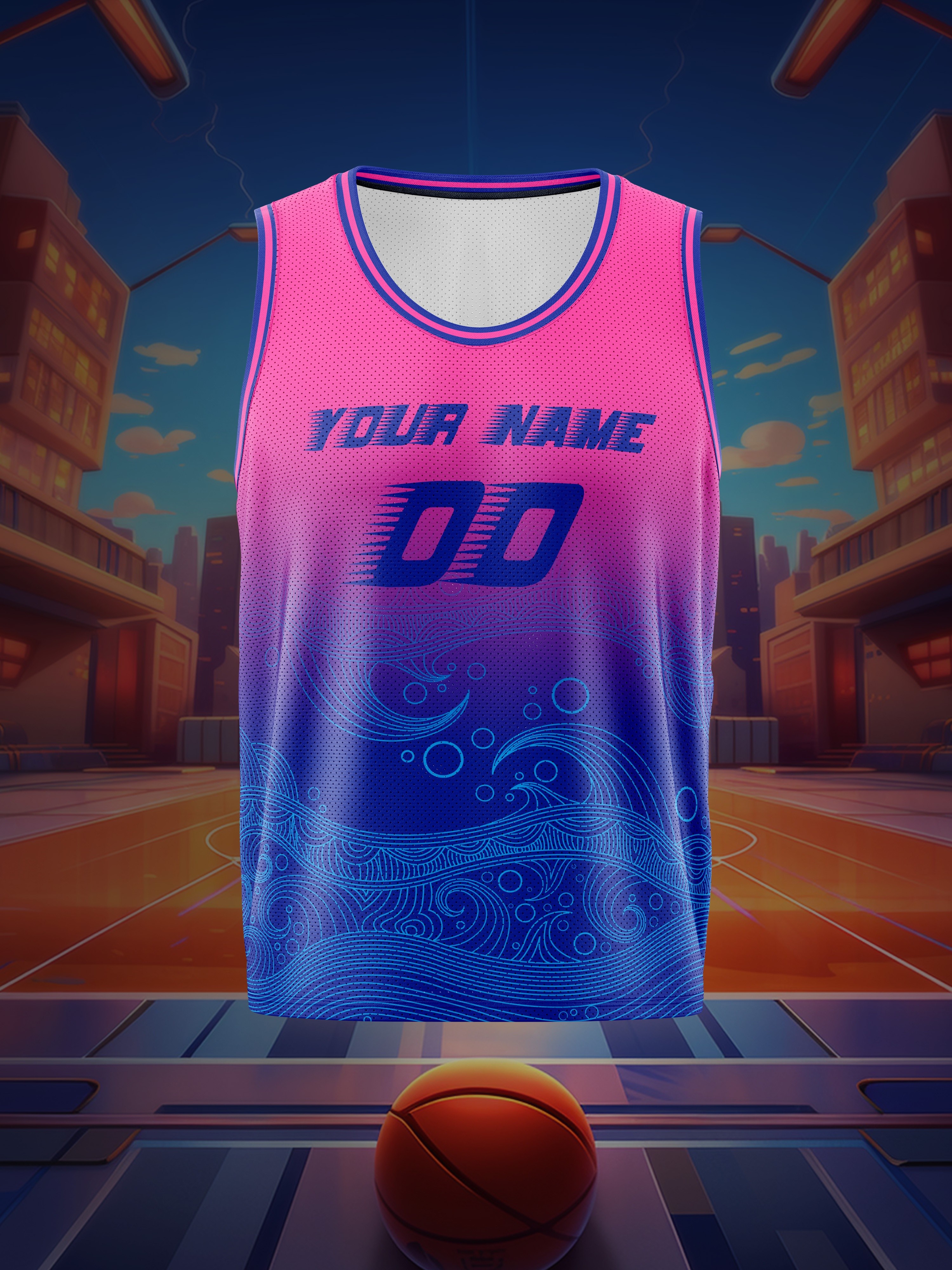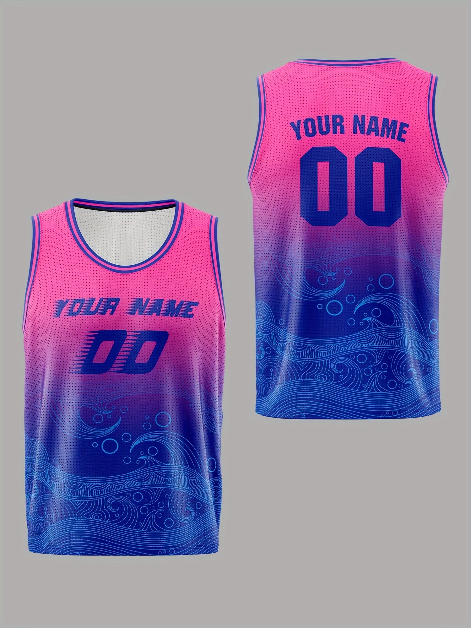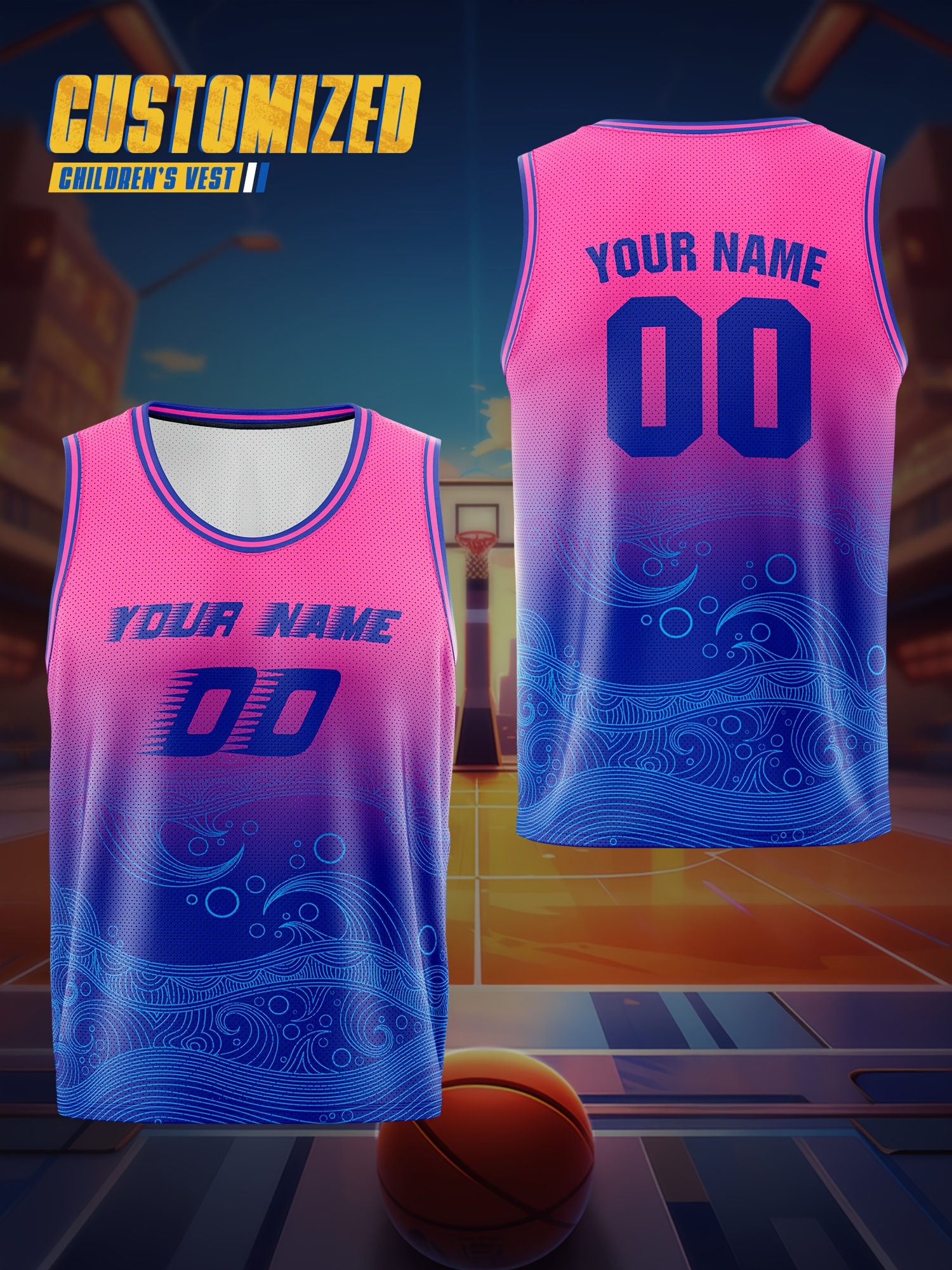 [Loose Basketball Jersey] Custom Sleeveless Basketball Jersey Shirt, Loose & Breathable | Boys Personalized Ocean Waves Pattern Top For Sports & Exercise