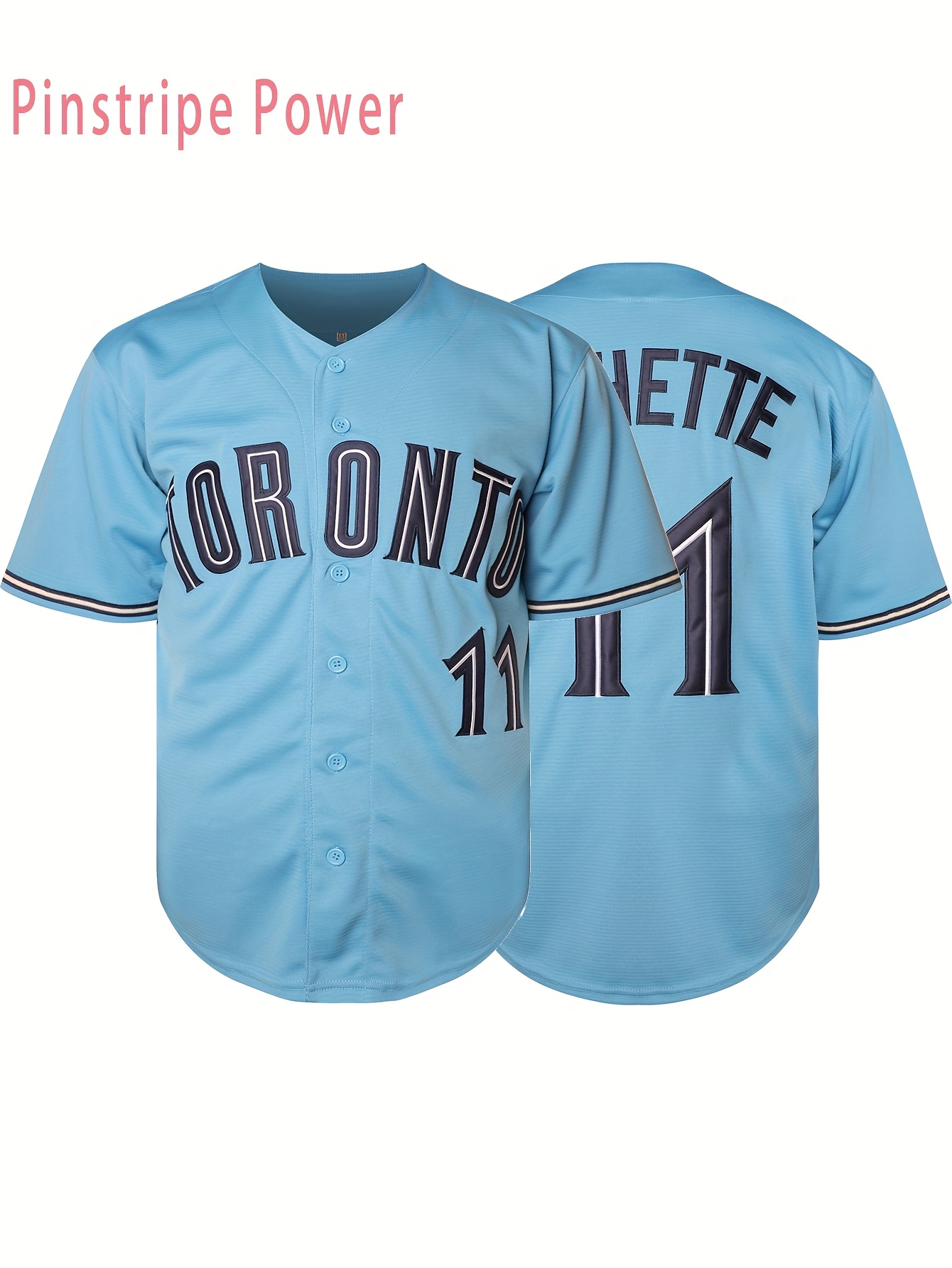 Men's #11 Blue Embroidered Baseball Jersey - V-Neck Button-Up Loose Fit Polyester Shirt for Training, Casual & Outdoor Sports | Machine Washable, Sizes S-3XL
