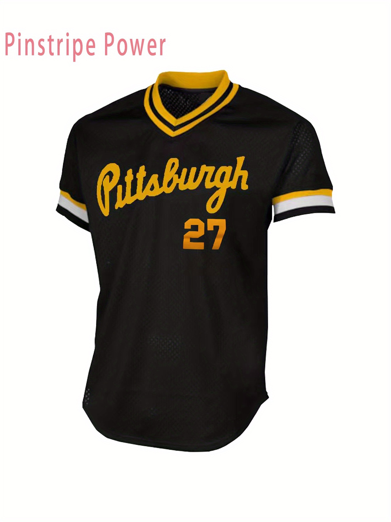 Men'S # 27 Black Retro Baseball Shirt - Breathable And Comfortable Polyester Fiber V-Neck Button Sports Shirt S-3XL Perfect For Team Training And Casual Wearing