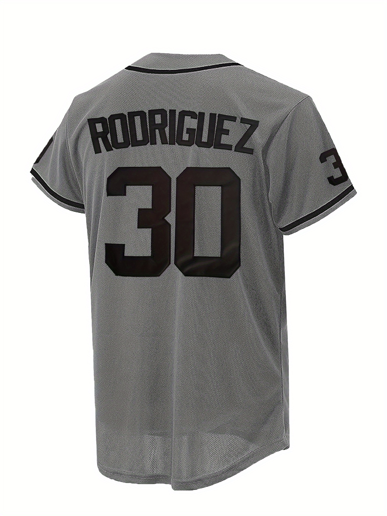 Men's Grey #30 Baseball Jersey - Breathable Button-Up V-Neck Shirt with "Rodriguez" & "I LOT" Design, Loose Fit for Training, Competition & Casual Wear (All-Season, Machine Washable), Baseball Shirt