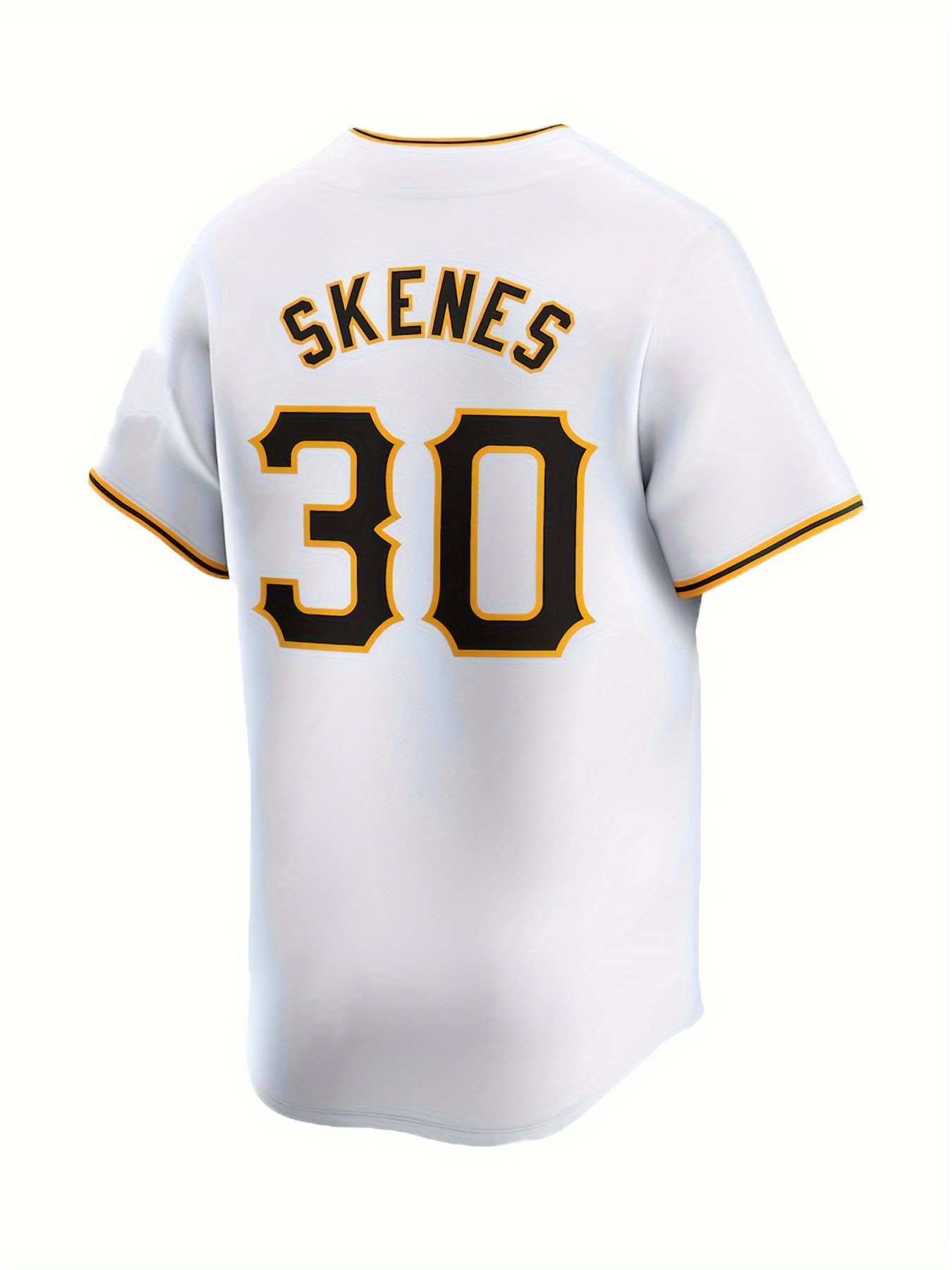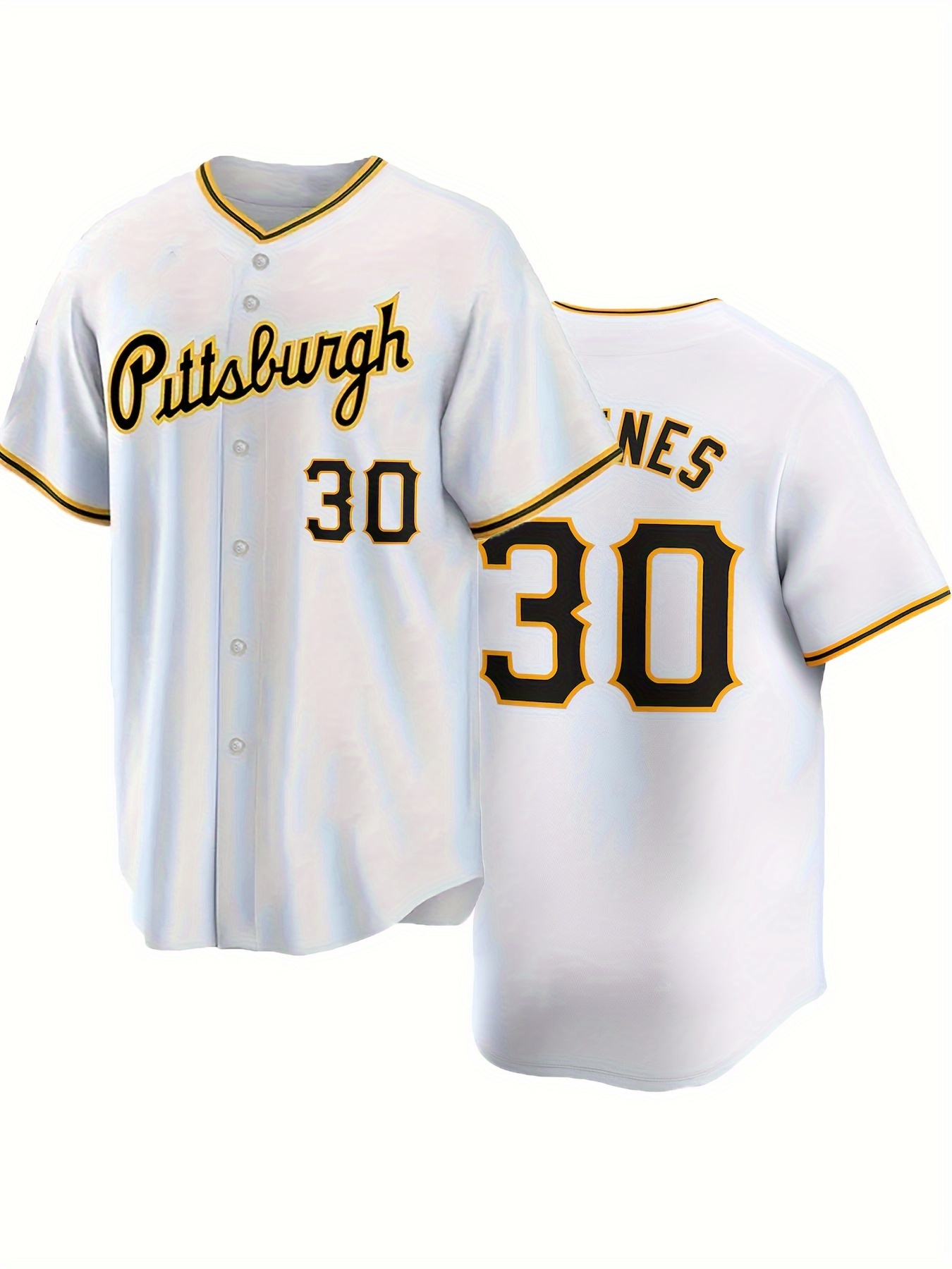 Men'S Pittsburgh #30 White Polyester Baseball Jersey - Sports V-Neck with Embroidered Letters & Numbers, Short Sleeve, Slight Stretch, Four Seasons Wear for Casual or Sports Occasions, Loose Fit Knit Fabric Tops