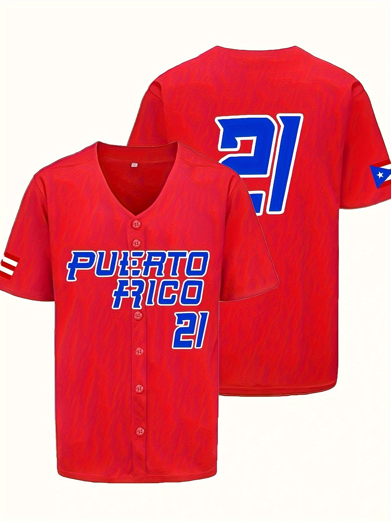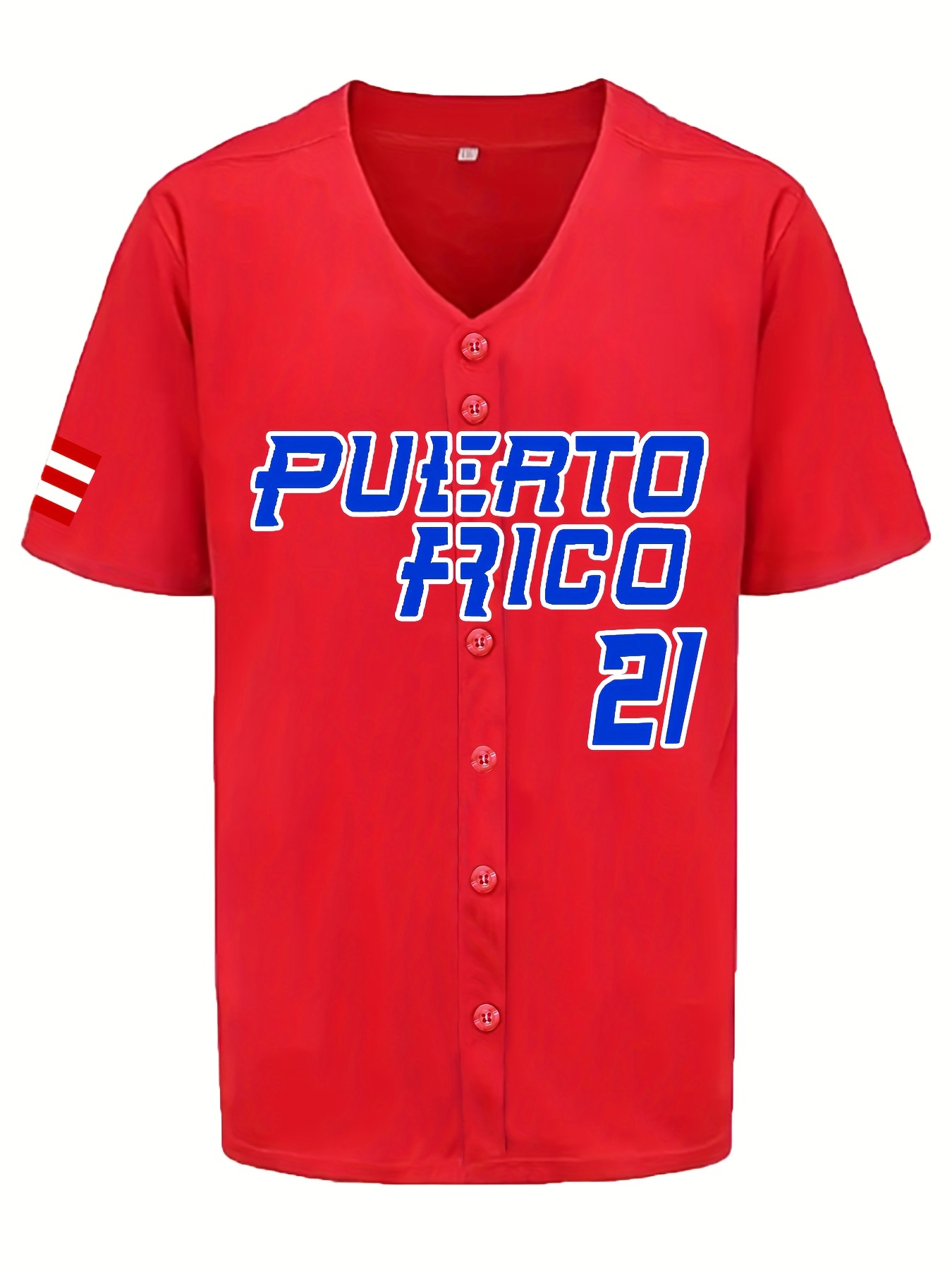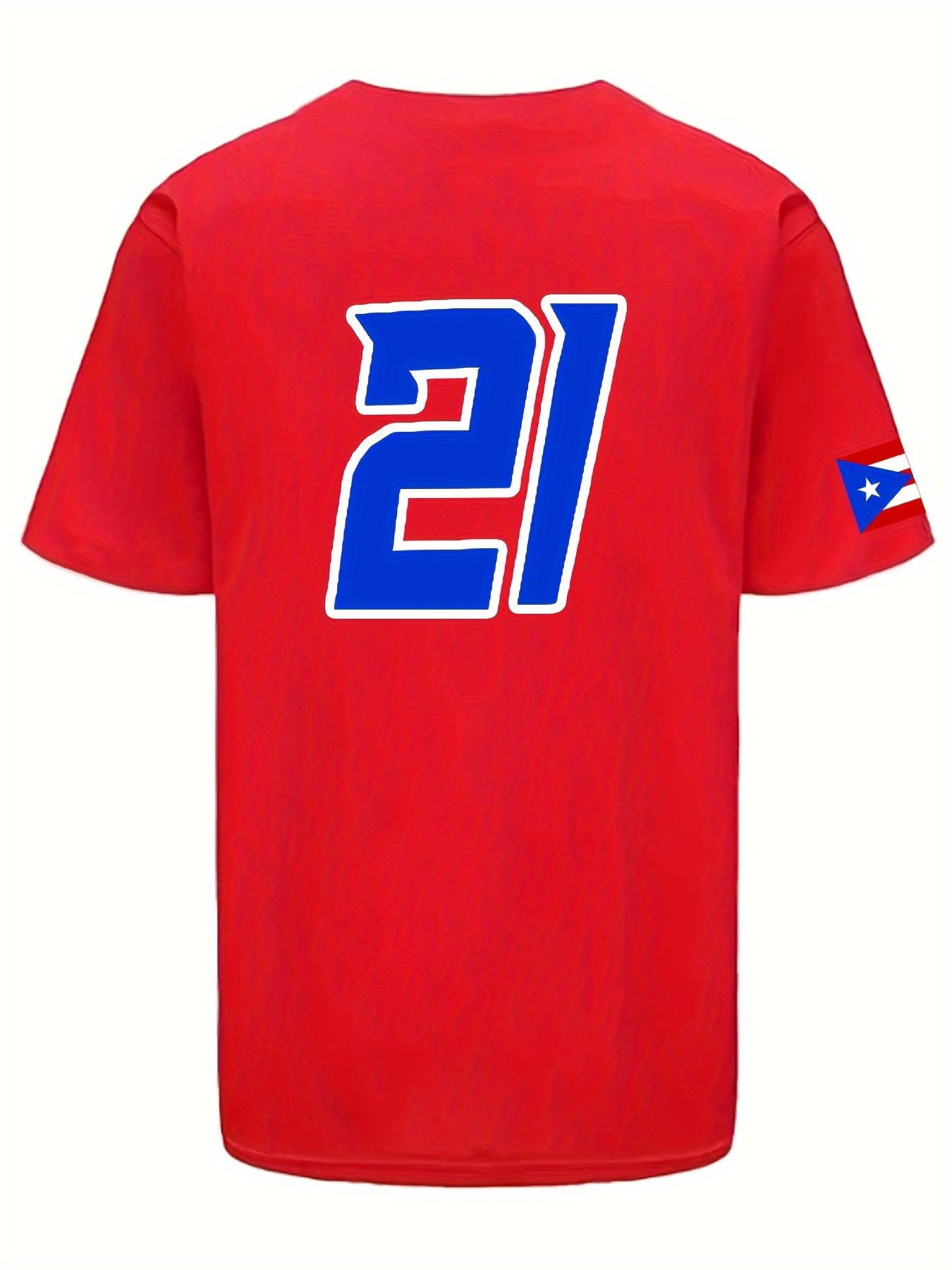 Men'S PUERTO RICO #21 Embroidery Design Baseball Jersey, Classic Retro Breathable Short Sleeve Sports Shirt For Training Competition