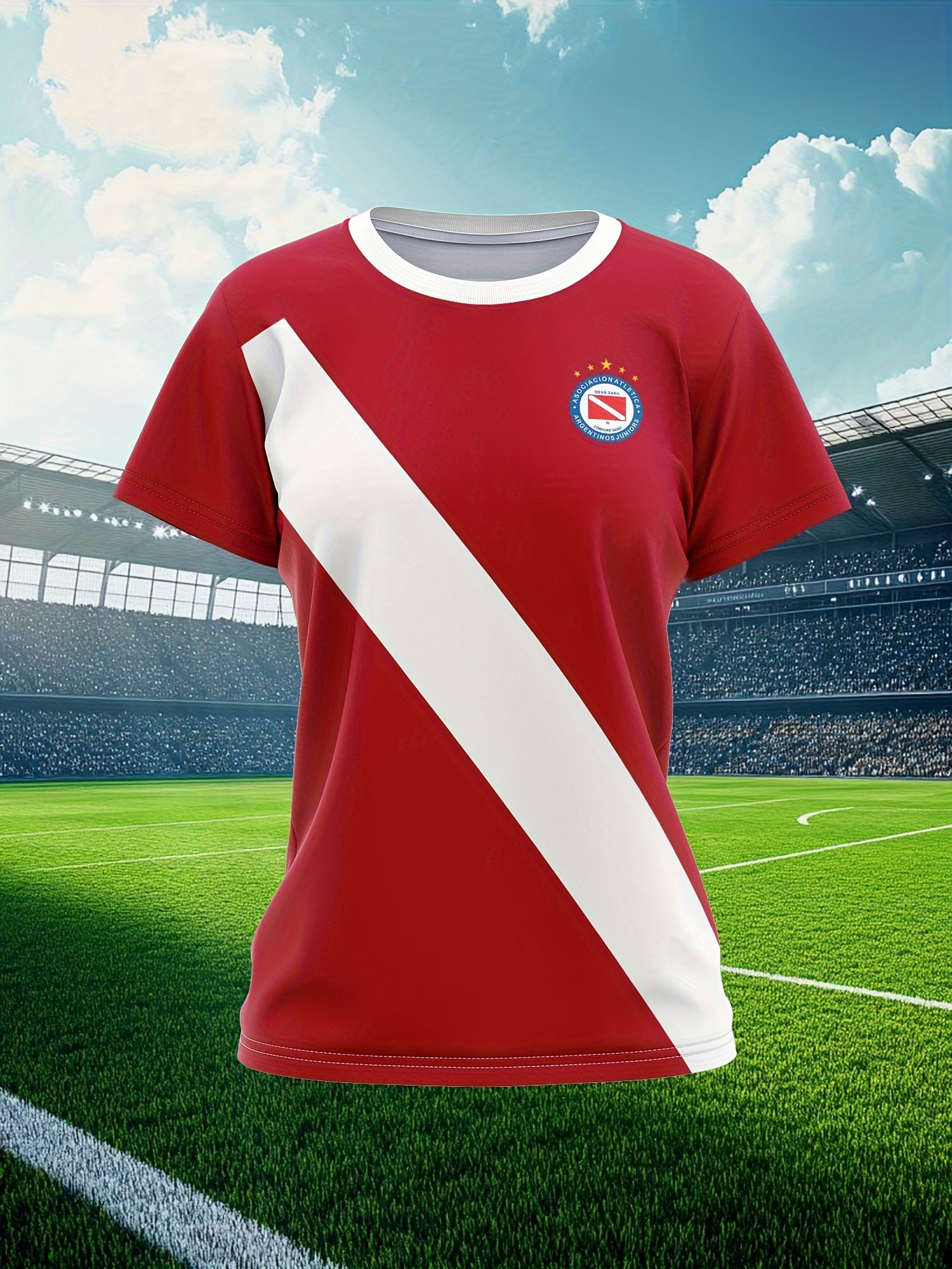 Women's Custom Soccer Jersey Personalized Name & Number - Two-Tone Red/White Athletic top - Non-Stretch Fabric for Soccer, Baseball, Gym - Custom Sports Apparel Gift for Female Players, Outdoor Sports Attire, Vibrant Stripe Design, Durable Sportswear